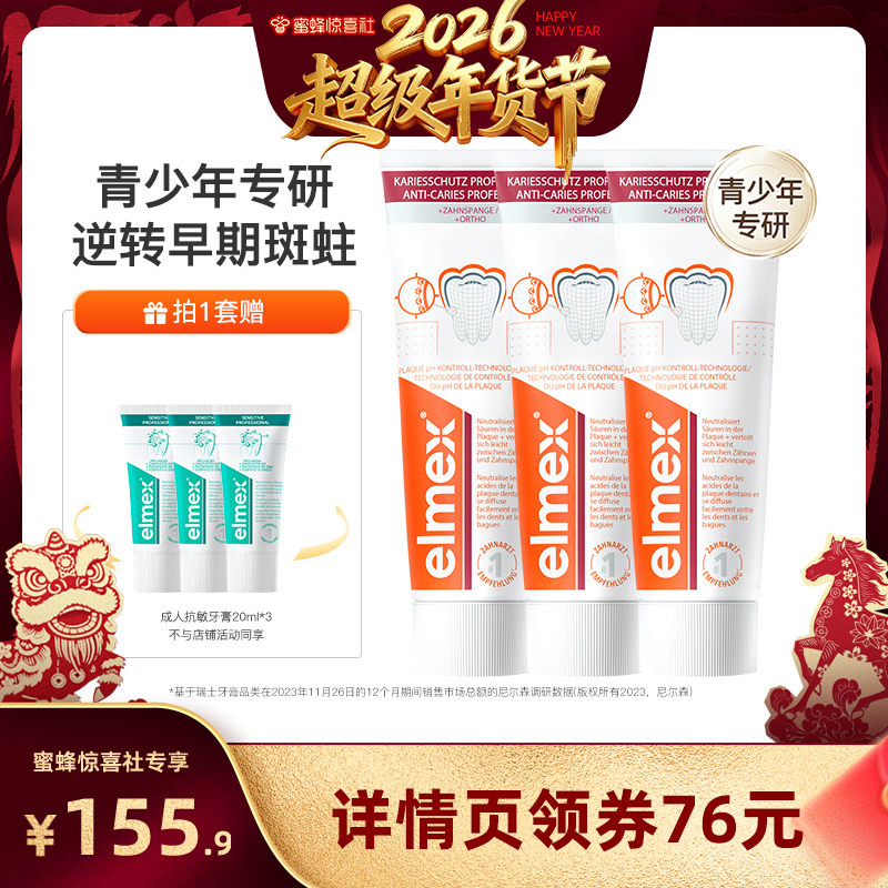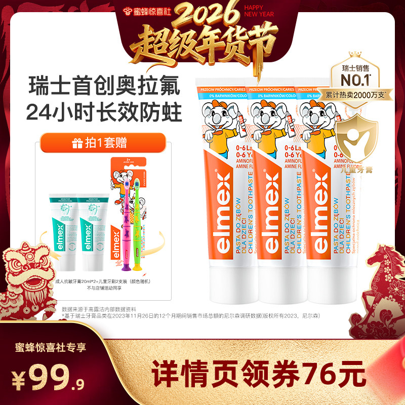 📚 【超级年货节】elmex艾美适儿童0-6-12岁含氟防蛀牙膏