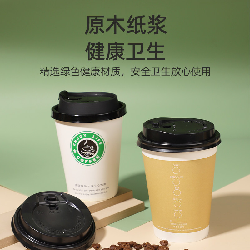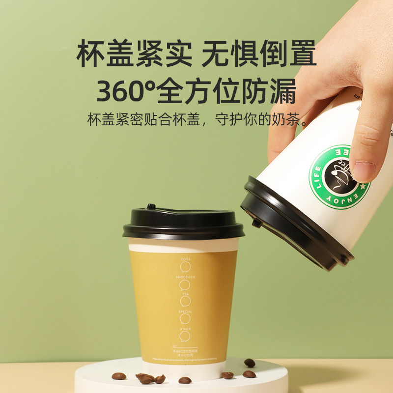 📚 奶茶纸杯一次性商用带盖吸管奶茶店专用外卖豆浆咖啡热饮杯子家用