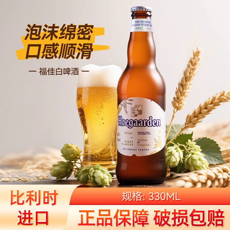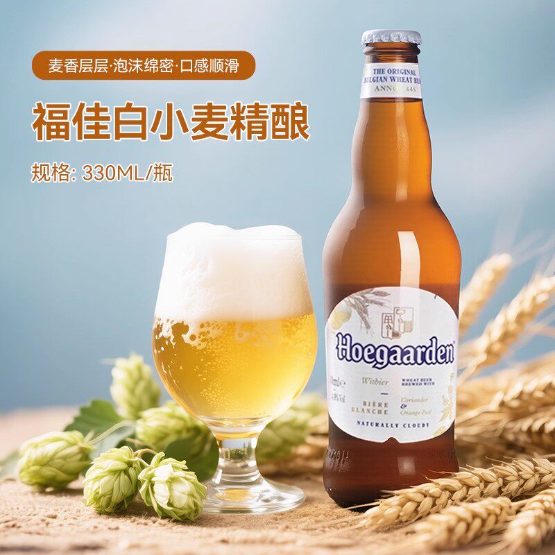 📚 Hoegaarde比利时进口福佳白啤酒330ml*24玻璃瓶整箱精酿小麦啤酒