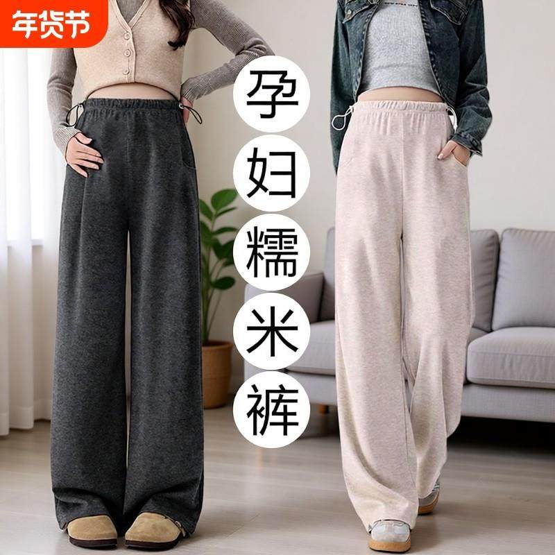 📚 孕妇糯米裤外穿阔腿打底裤猪鼻扣加绒加厚长裤冬装冬季孕晚期托腹