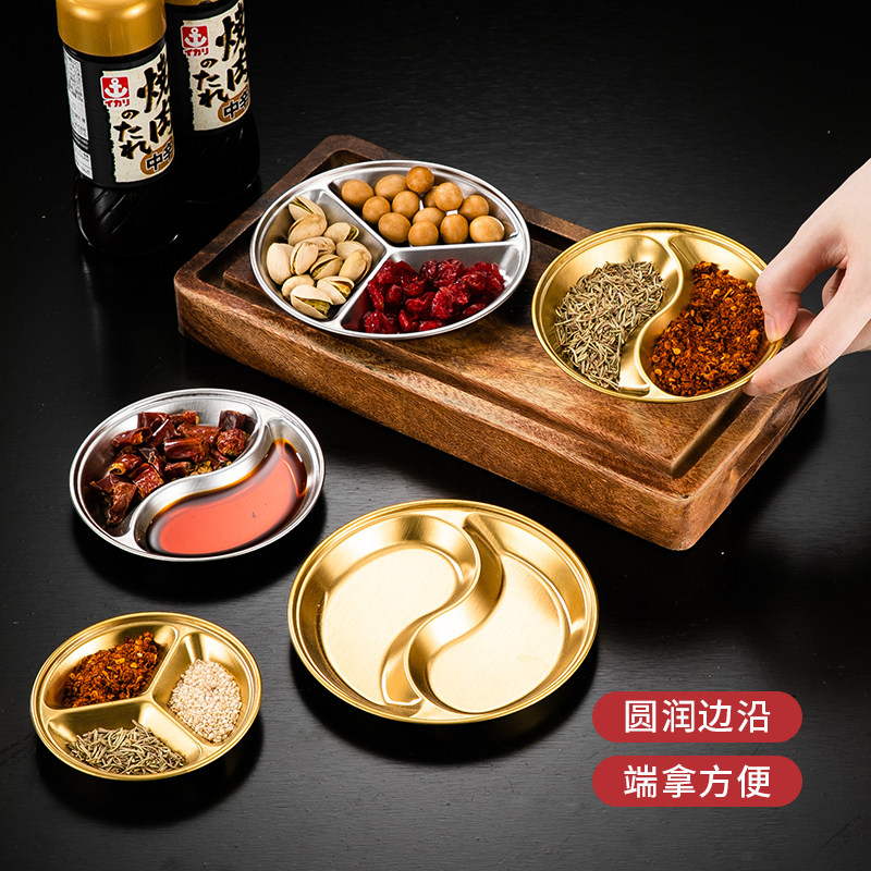 🍽️亲们,今天来分享一款超赞的小食神器,绝对让你爱不释手!它就是那个“不锈钢小圆碟小菜碟子”,金色调配上独特的分格设计,简直就是厨房的小助手,让我这个美食爱好者彻底沦陷了!