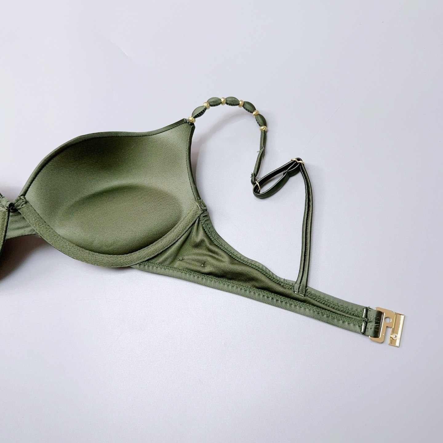 📚 Amber高端设计师款女士钢圈聚拢承托力军绿比基尼沙滩度假带胸垫