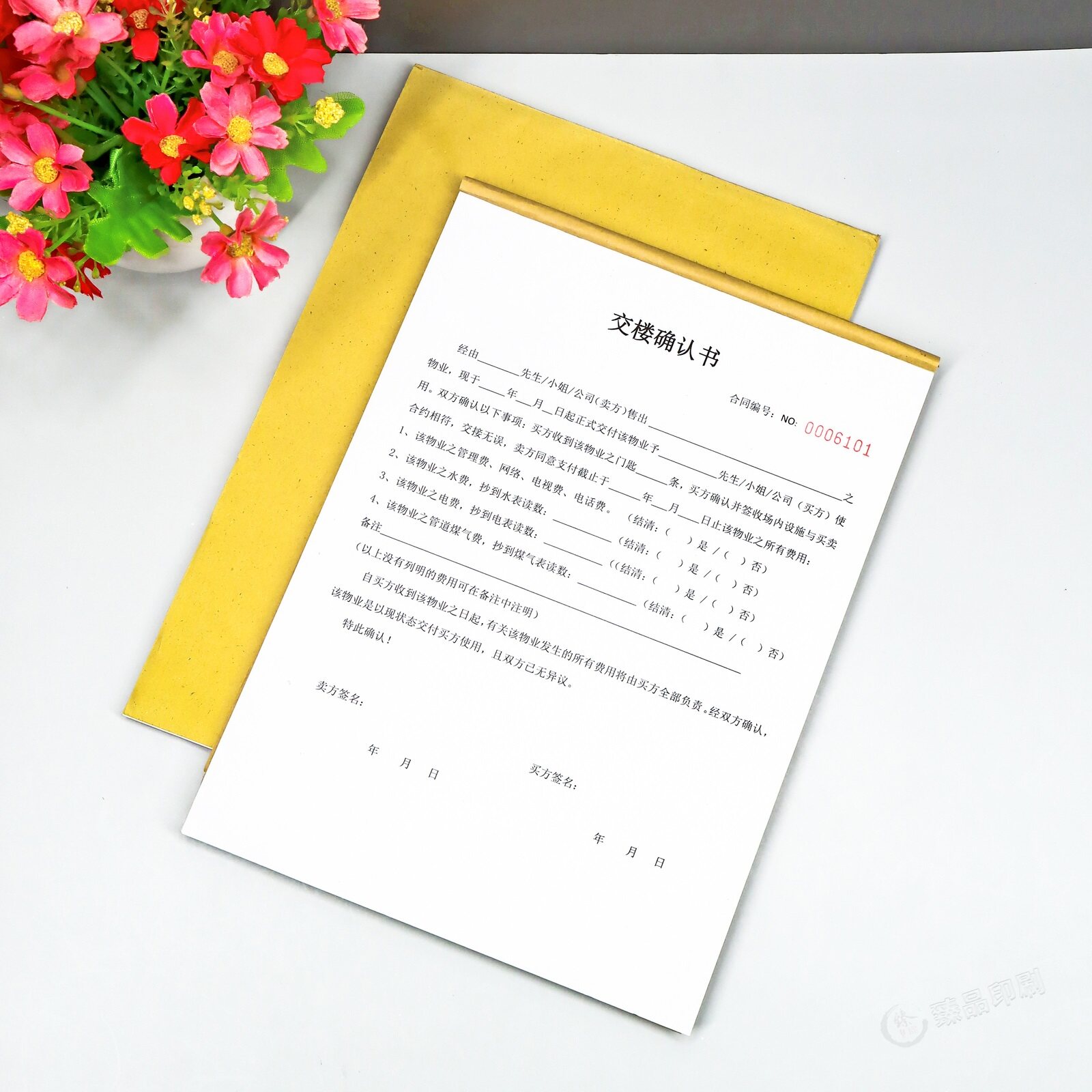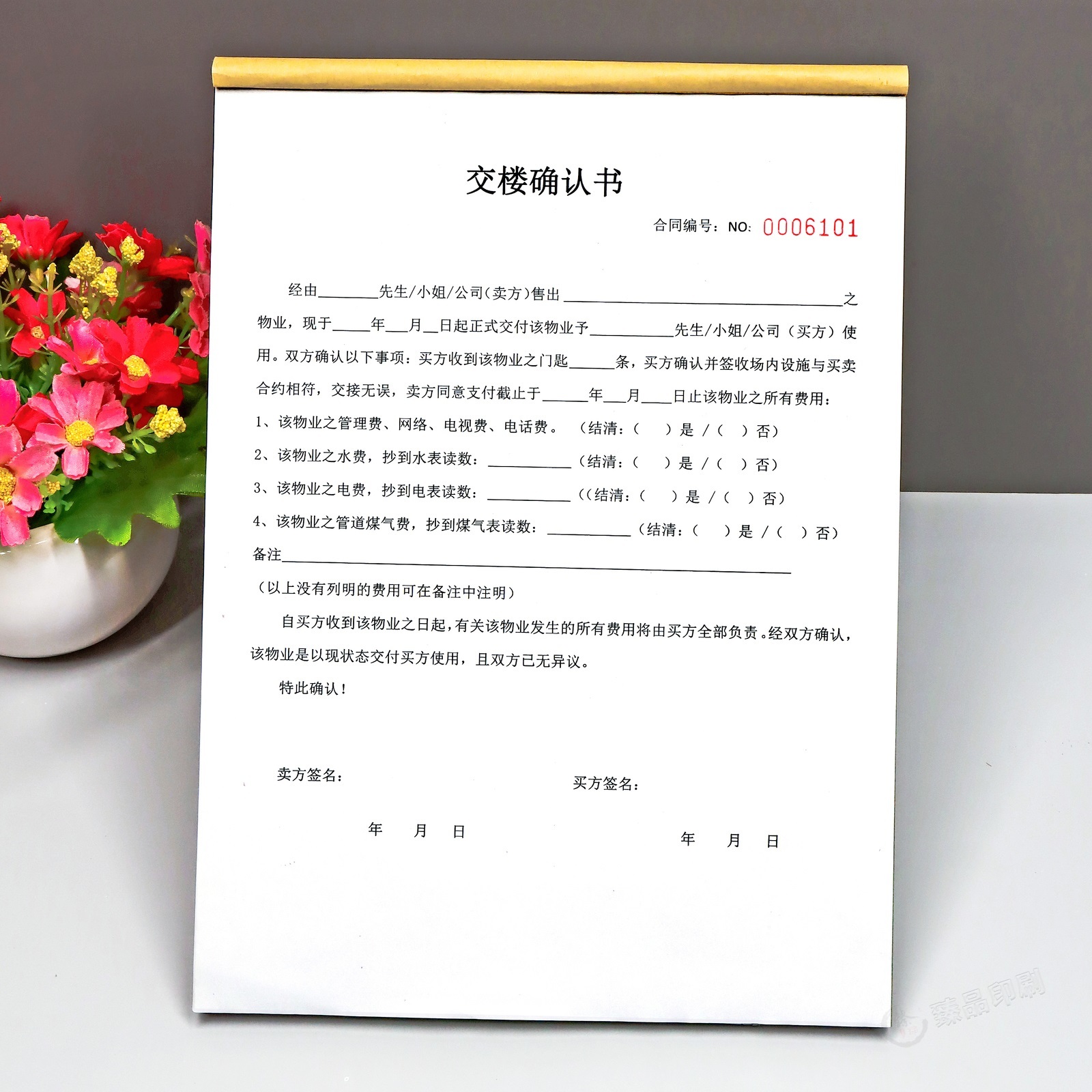 📚 二手房交楼确认书二联房屋买卖水电物业交接确认表格房产中介用品