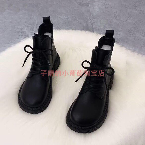 📚 2024秋冬新款时尚美拉德马丁靴女英伦风加绒增高宽头平底短靴子女