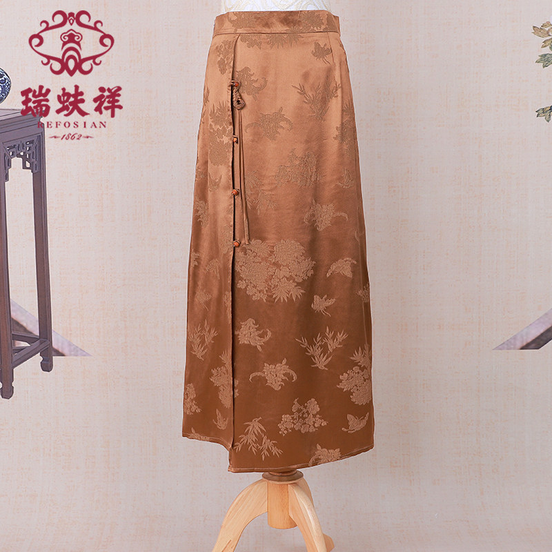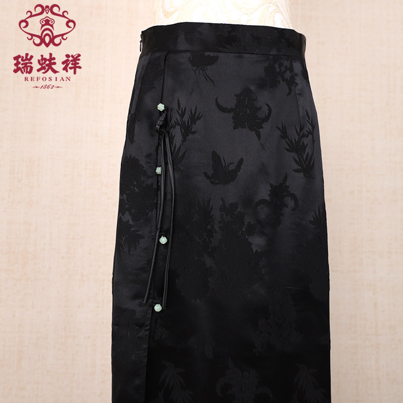📚 瑞蚨祥中式国风旗袍半身裙女中长款a字半裙高腰桑蚕丝黑色包臀裙