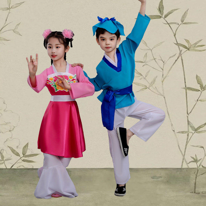 📚 六一黄梅戏演出服儿童对花新款古装书童丫环成人打猪草戏服表演服