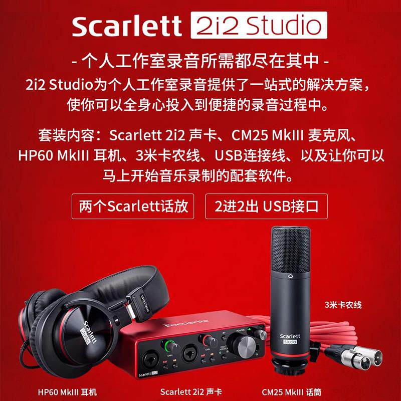📚 Focusrite福克斯特Scarlett2i2 Studio三代/四代录音声卡话筒套装