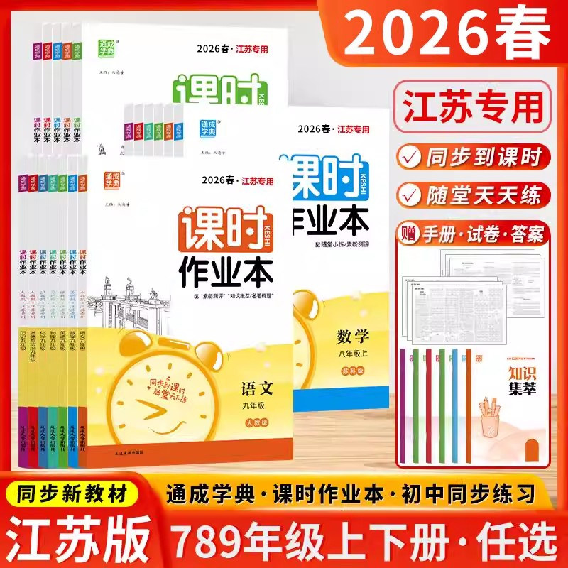 📚 江苏版2026春季通成学典课时作业本七7八8九9年级上下册语文数学英语物理化学历史政治初中一1二2三3苏科版人教版南通专用训练X