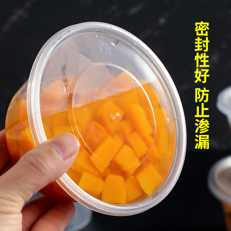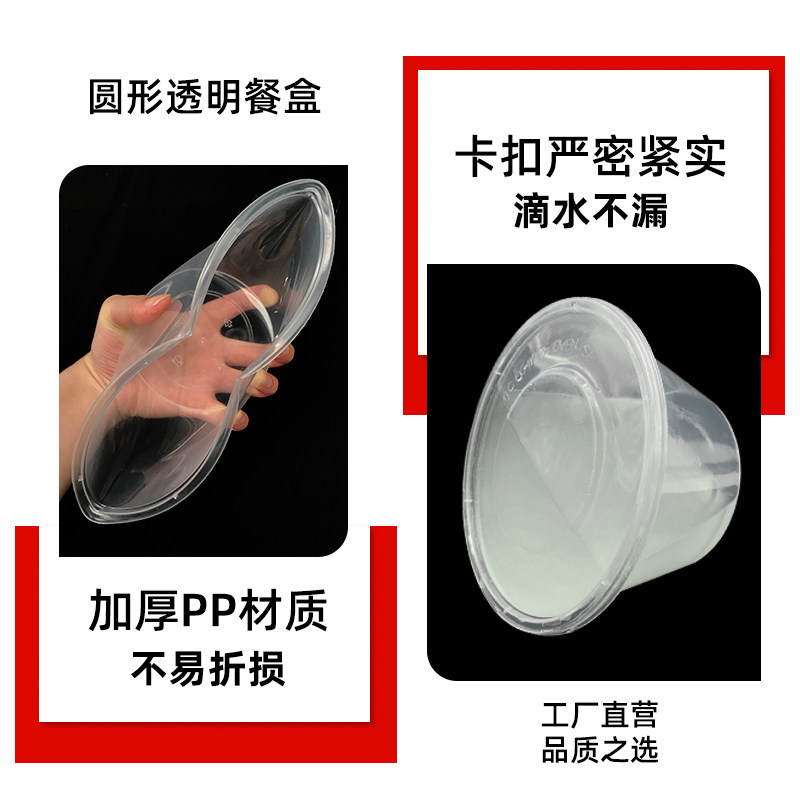 📚 透明圆形加厚1250ML一次性餐盒塑料外卖打包盒商用便当盒粥桶饭盒