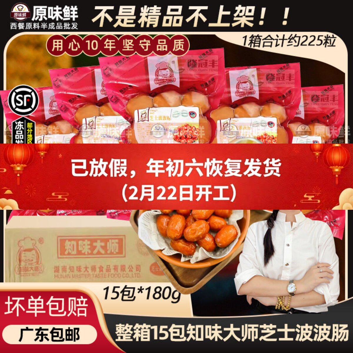 📚 整箱知味大师芝士波波肠烟熏风味香浓芝士脆皮香肠180g约15粒*15