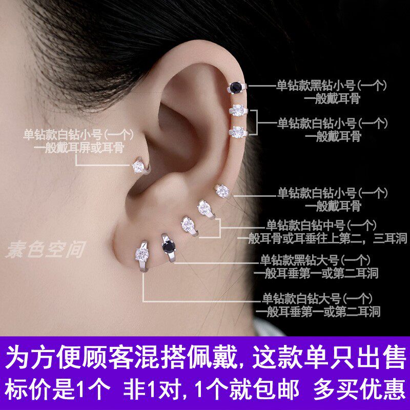 📚 耳链双耳洞连体耳钉女纯银耳骨耳环一体会动的耳饰品多两个耳饰