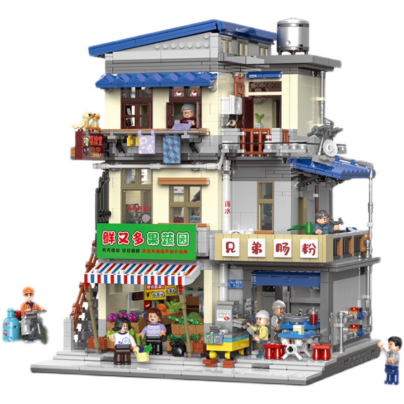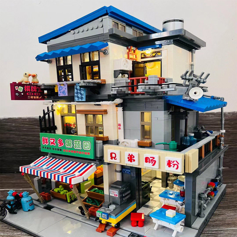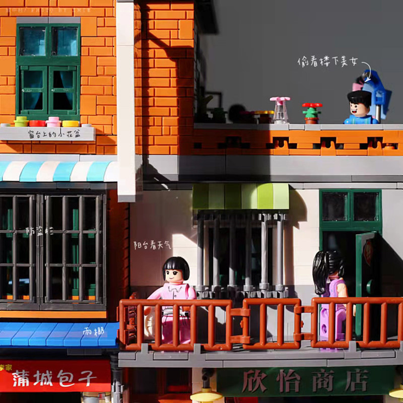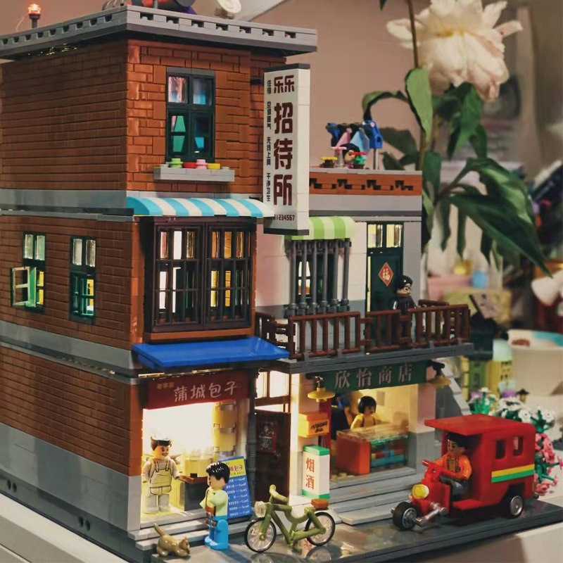 📚 中国积木城中村招待所拼插肠粉店建筑街景80后高难度儿童拼装玩具