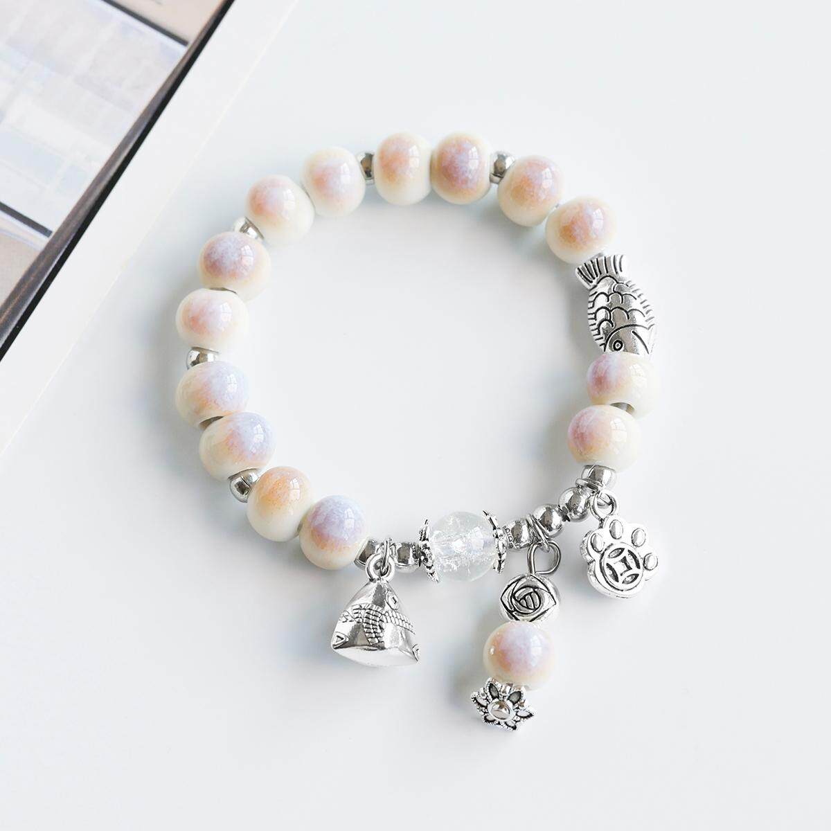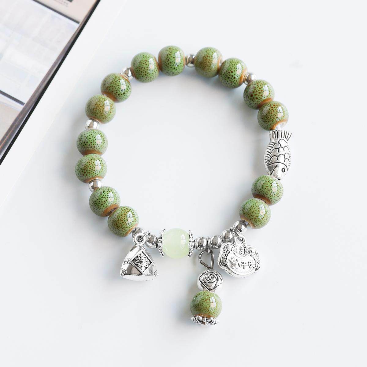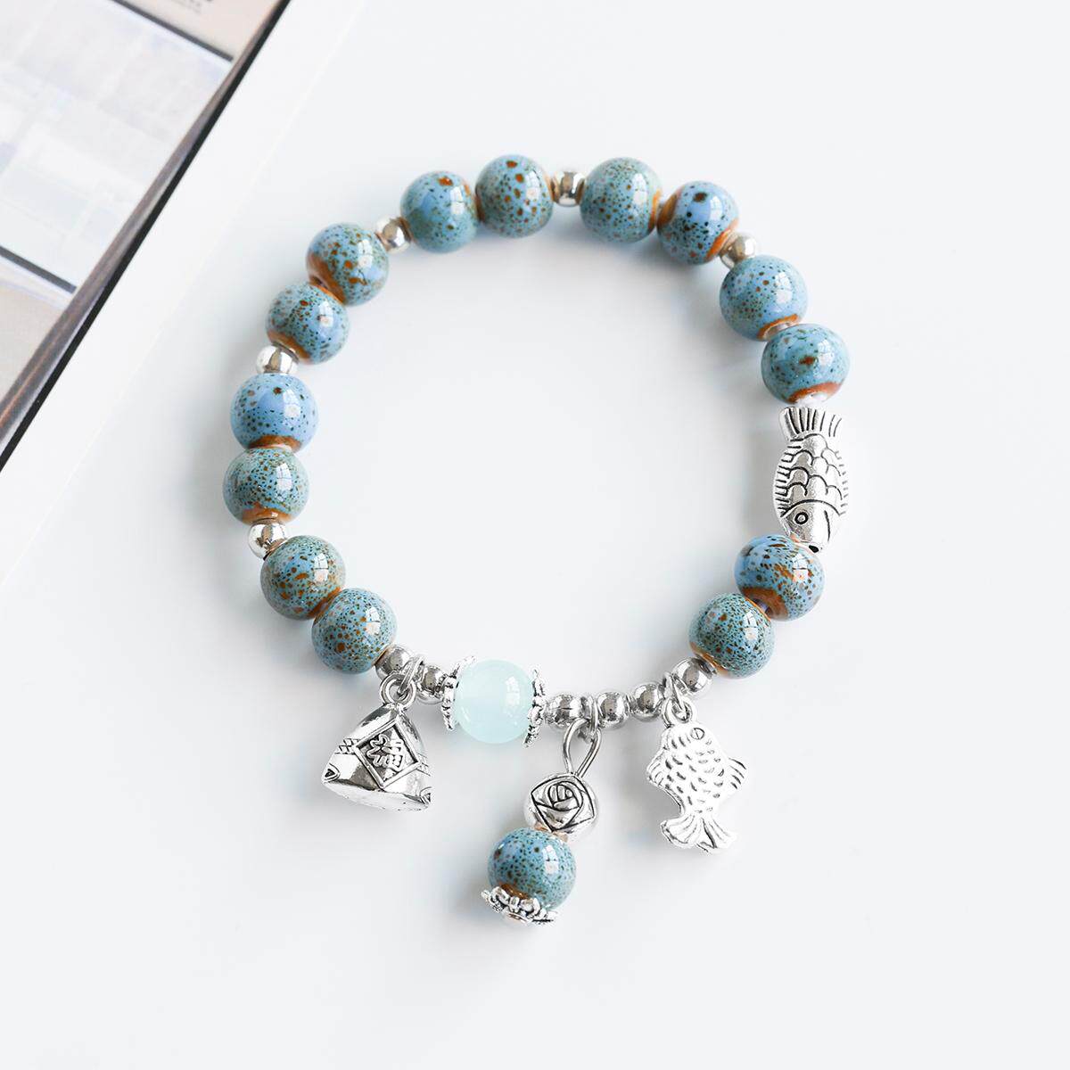 📚 民族风夜市爆款陶瓷手链景德镇瓷珠手串国风锦鲤福袋手串情侣手饰