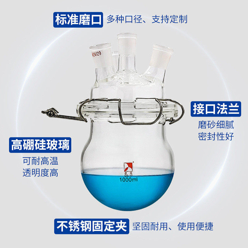 📚 正元开口反应器玻璃反应釜球筒形分体式圆底烧瓶三四五口反应器盖