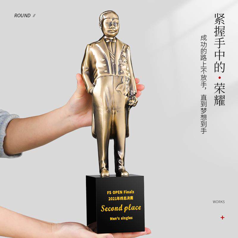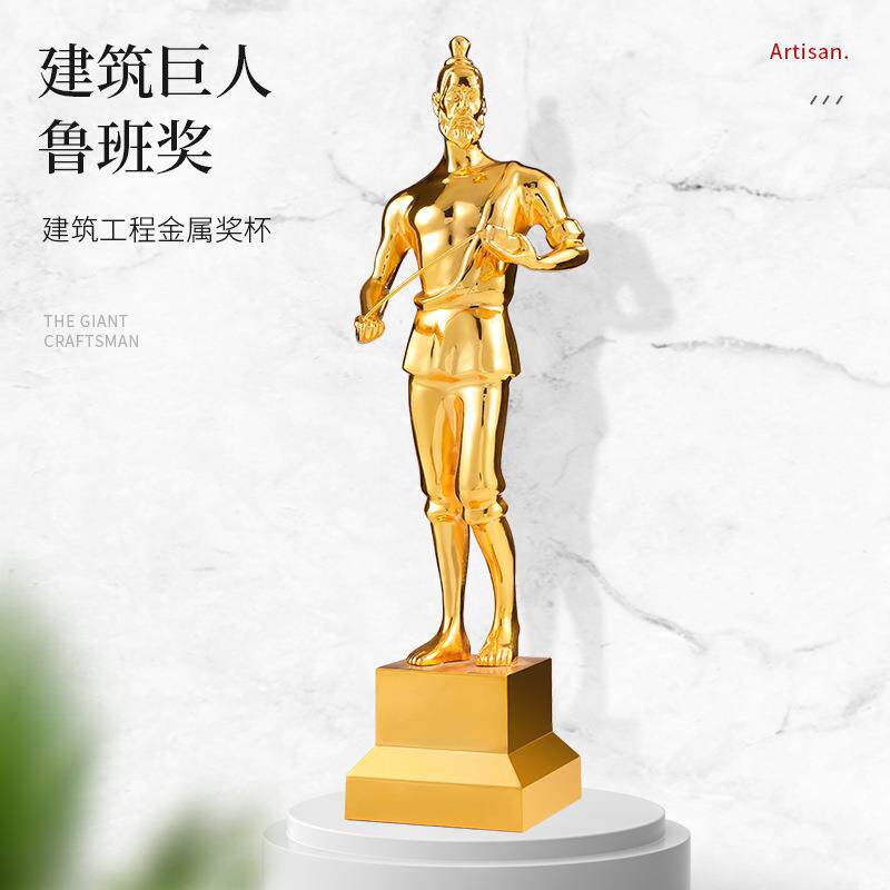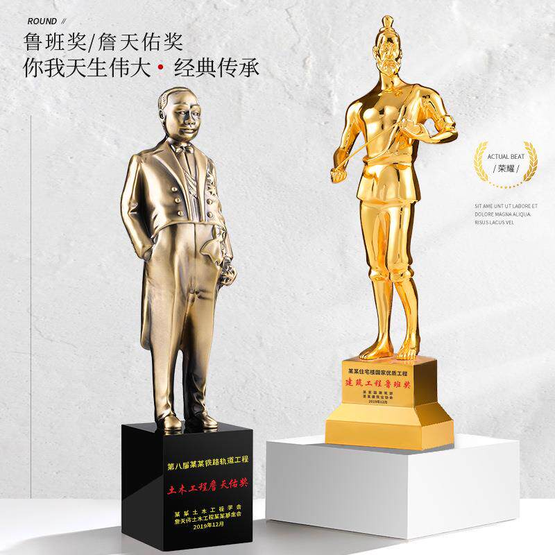 📚 工程建设鲁班奖建筑设计优秀小金人水晶金属奖杯詹天佑奖人物造型