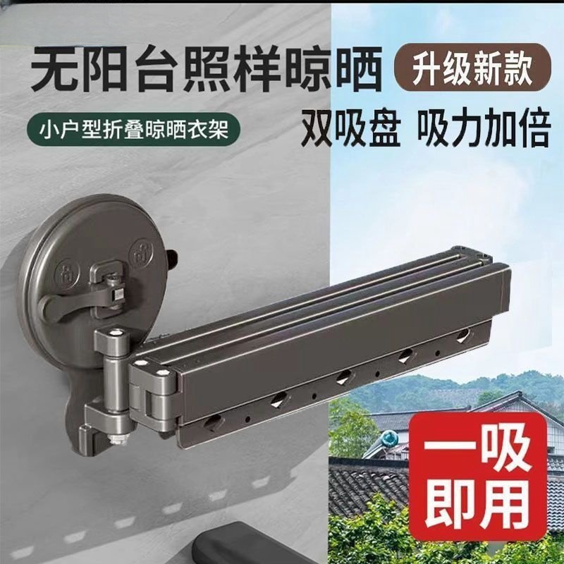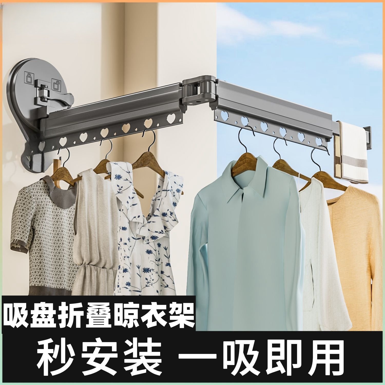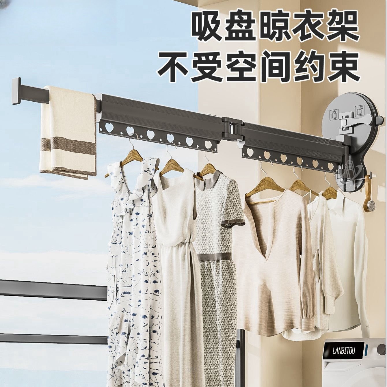 📚 吸盘折叠晾衣杆阳台室内家用免打孔晒衣架多功能旅行神器伸缩衣架