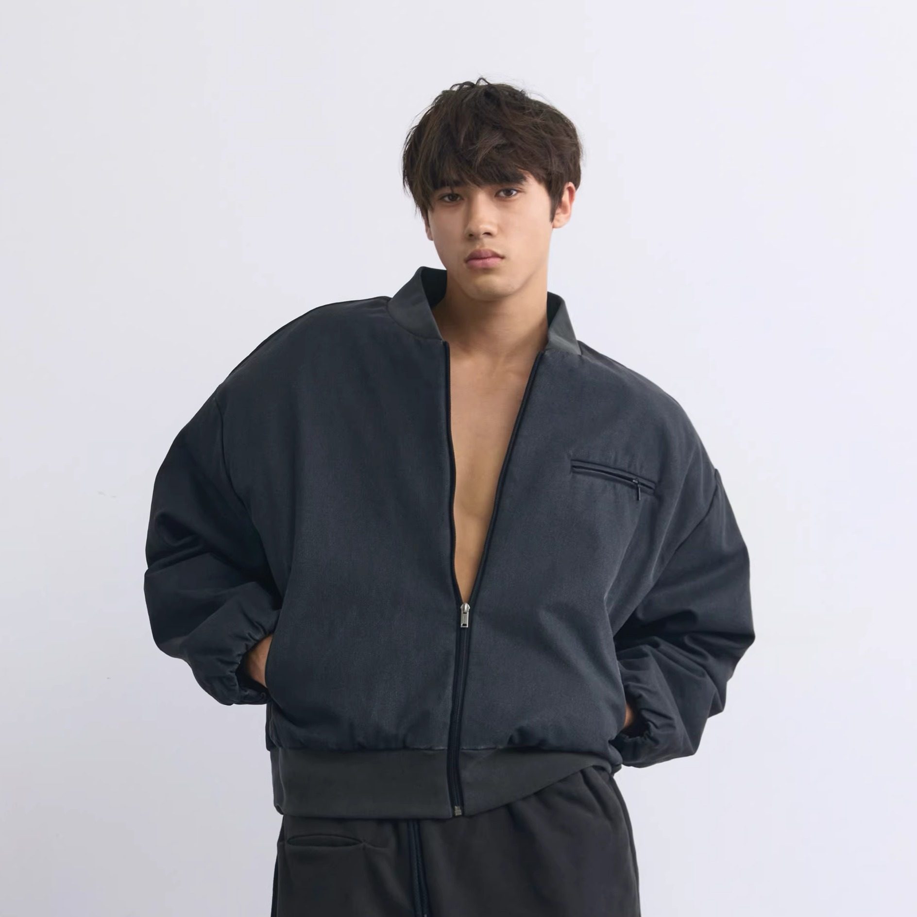 📚 Terrawear纯棉帆布刮涂褪色水洗短宽飞行员棒球服Bomber棉衣夹克