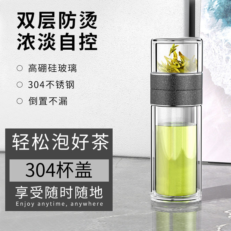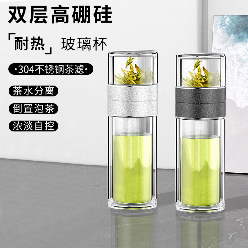 📚 点盛2026新款高级茶水分离杯双层高硼硅玻璃隔热泡茶杯子一杯多用
