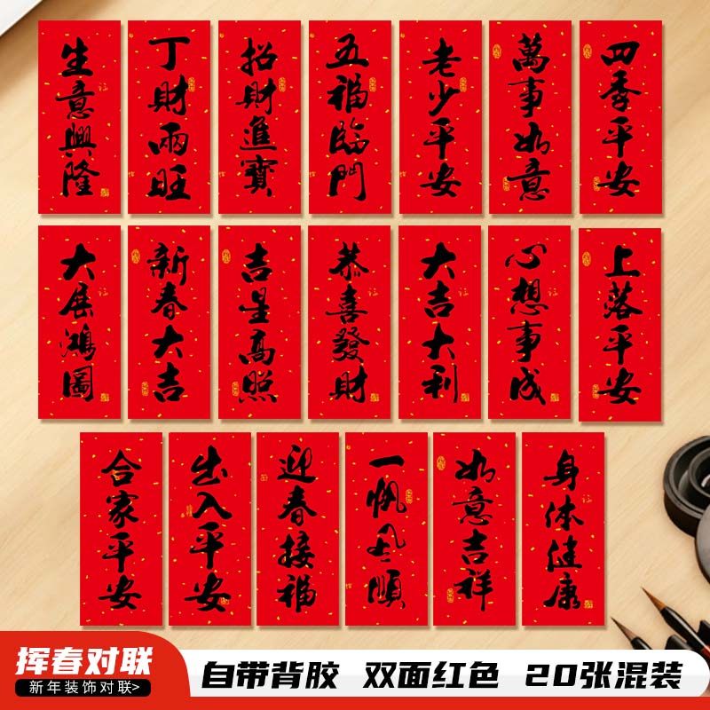 📚 2026新年挥春迷你小尺寸对联家用春联楼房入户门四字书法福字门贴