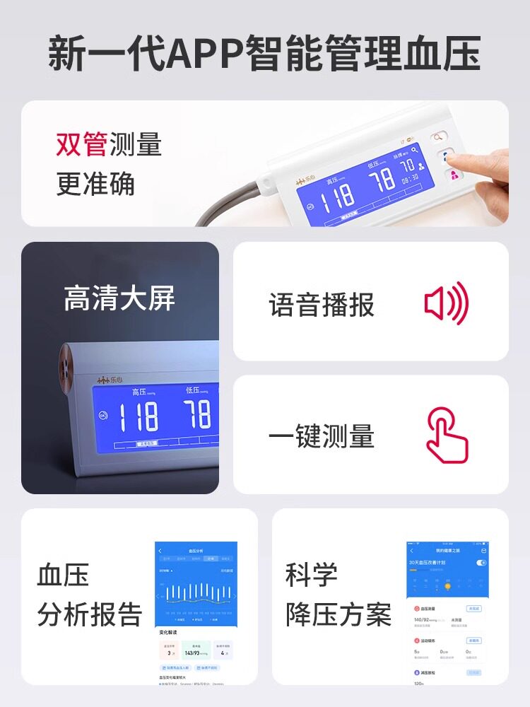 📚 乐心双管量血压测量仪电子血压计全自动医家用精准血圧i7WIFI蓝牙