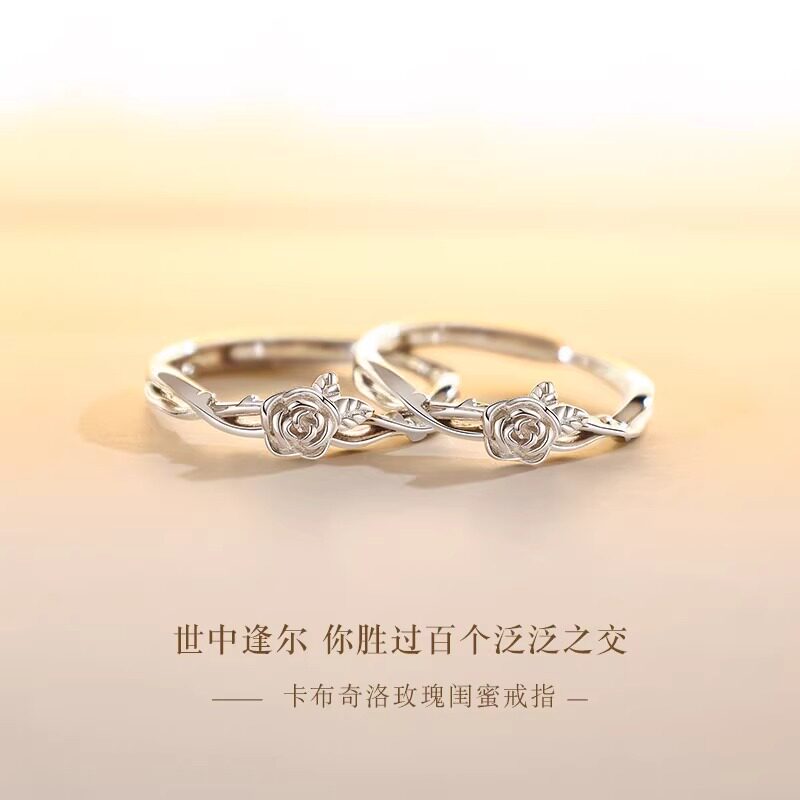 📚 925纯银玫瑰戒指女小众设计轻奢高级感情侣对戒520礼物送闺蜜姐妹