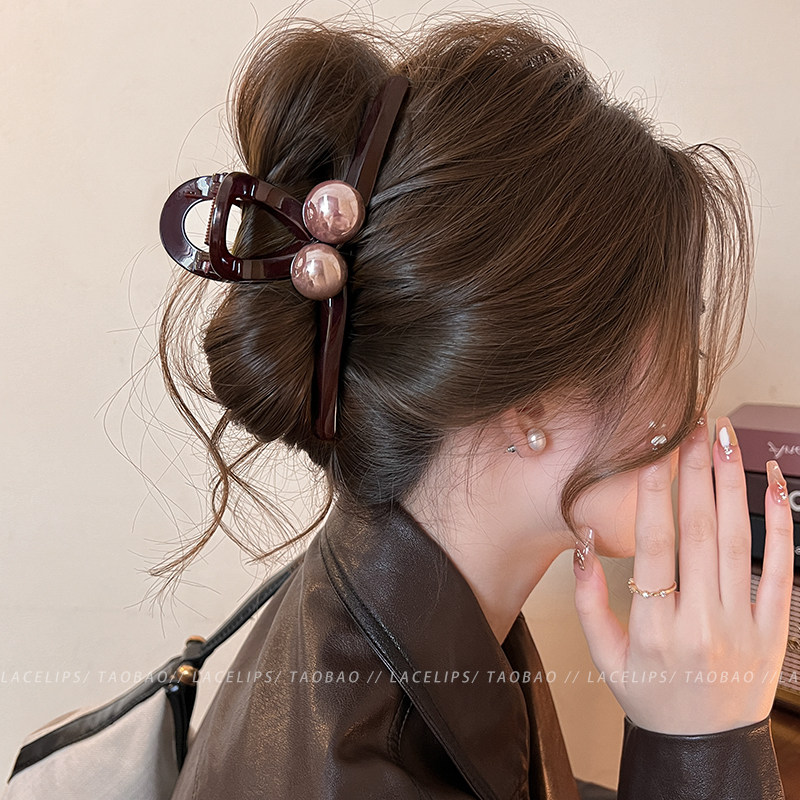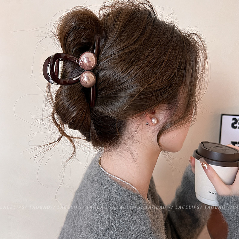 📚 秋日高级感珍珠抓夹大号鲨鱼夹发夹女2026新款后脑勺盘发夹子发饰