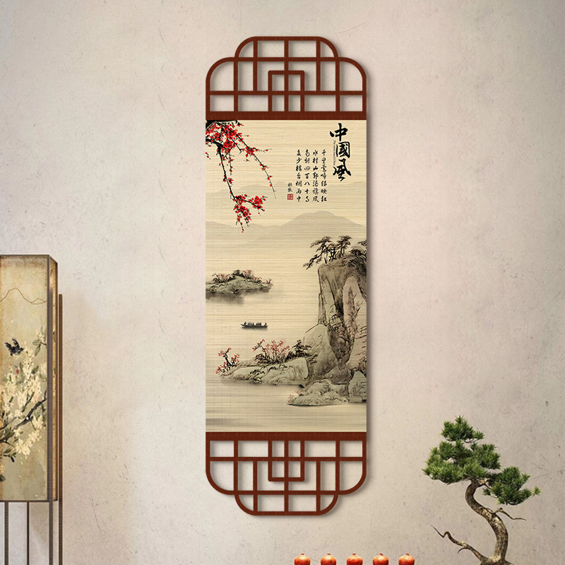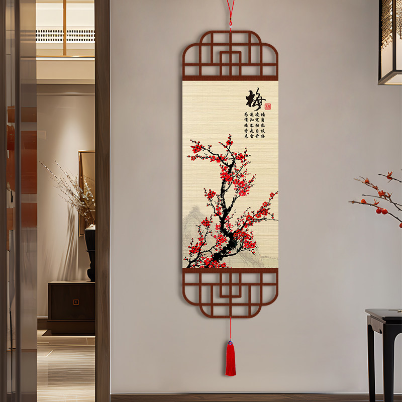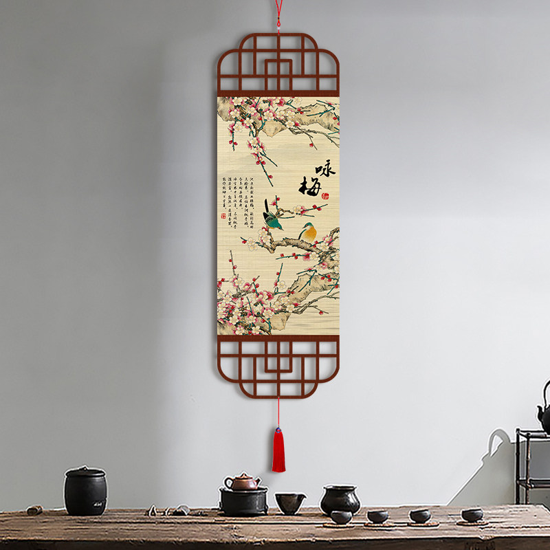 📚 中式梅花喜上眉梢竹编挂画玄关装饰画竹帘挂画茶室客厅书房竹帘画