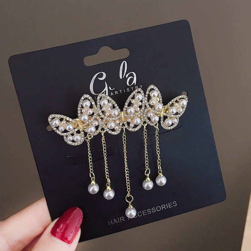 📚 新款复古高级感花朵发夹子百搭气质一字夹蝴蝶流苏顶夹半扎发卡子