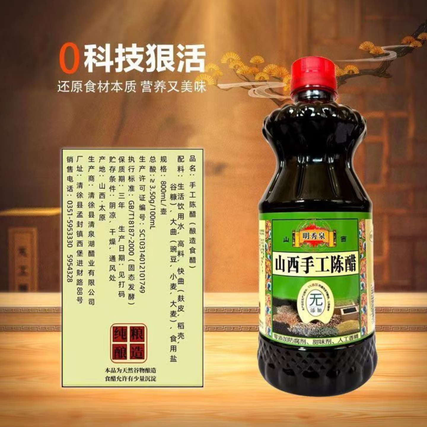 📚 明秀泉山西手工陈醋纯粮酿造家用食用3.5度凉拌醋拍一发三瓶