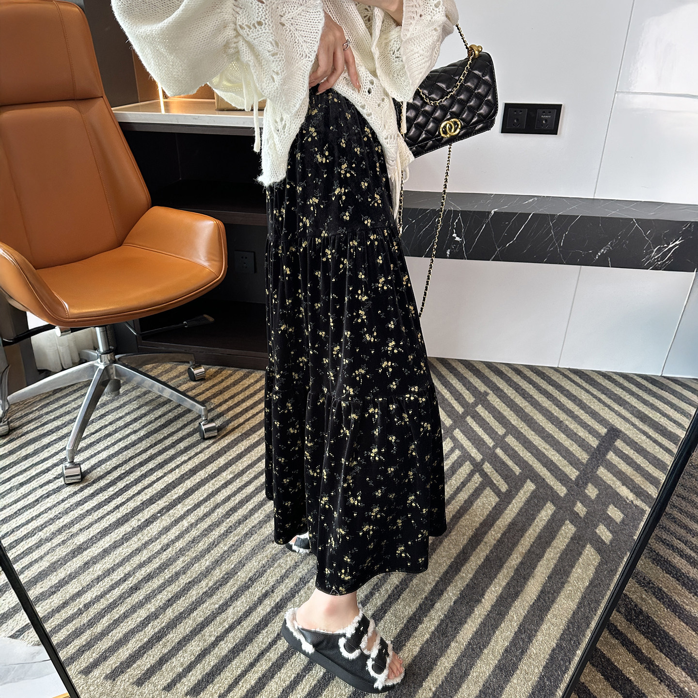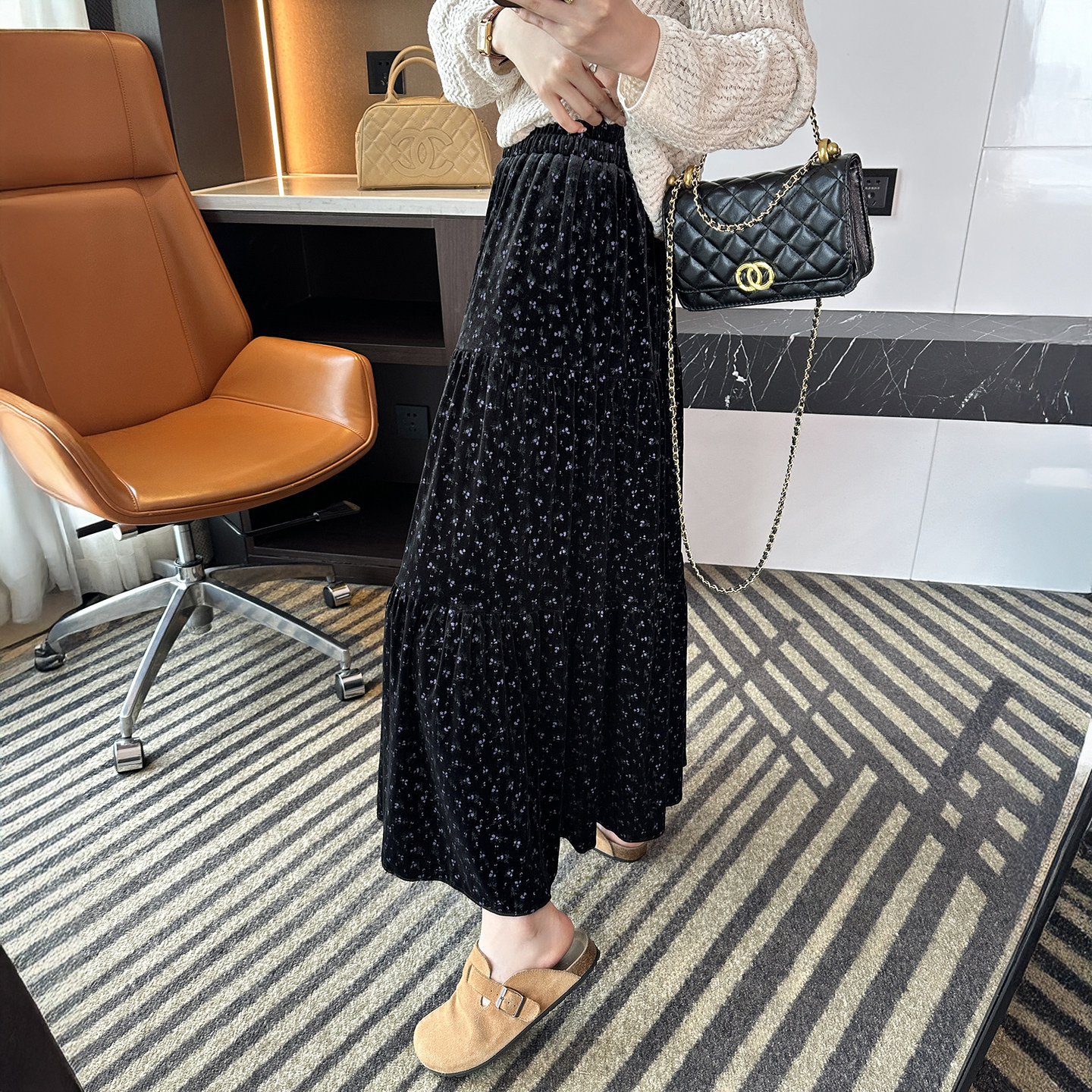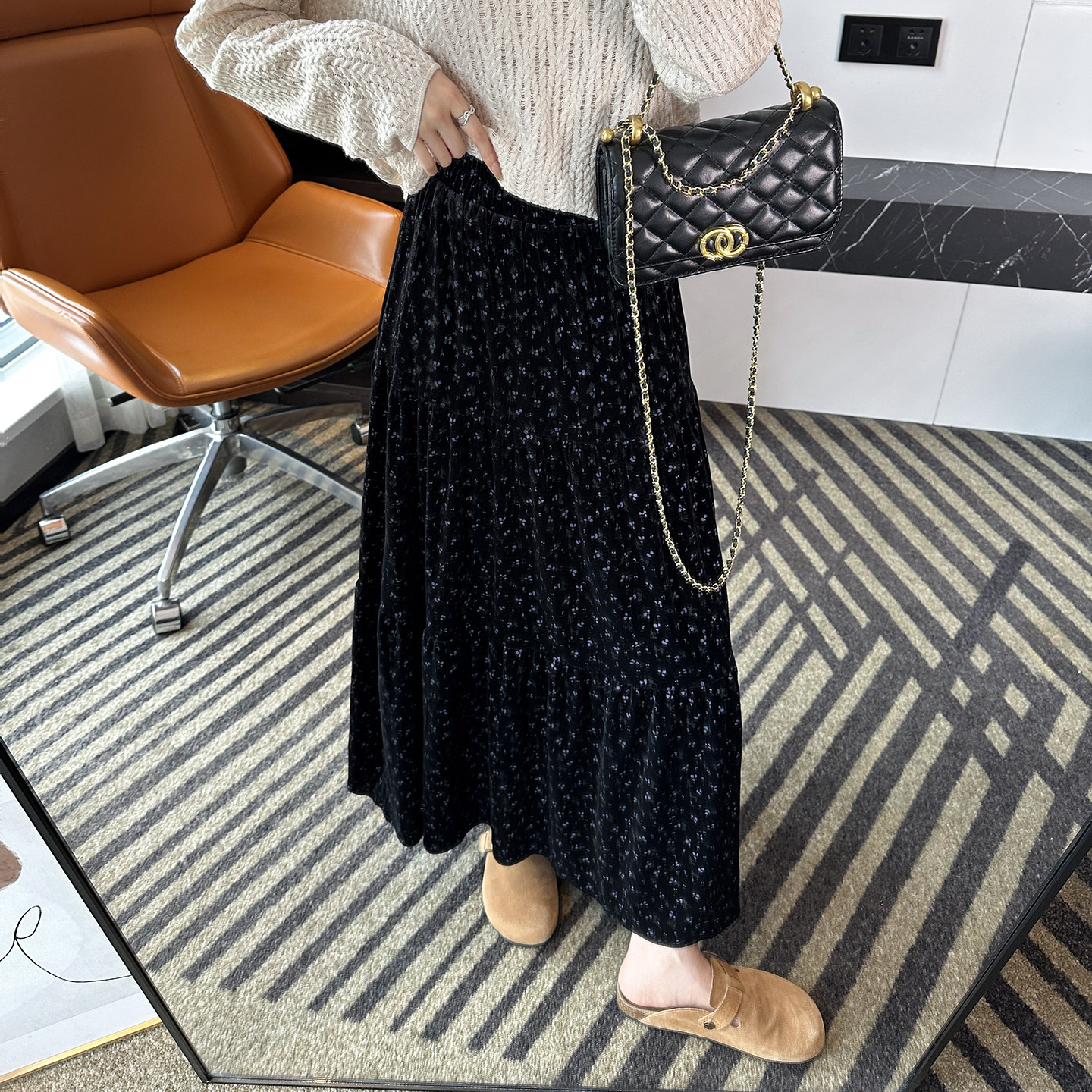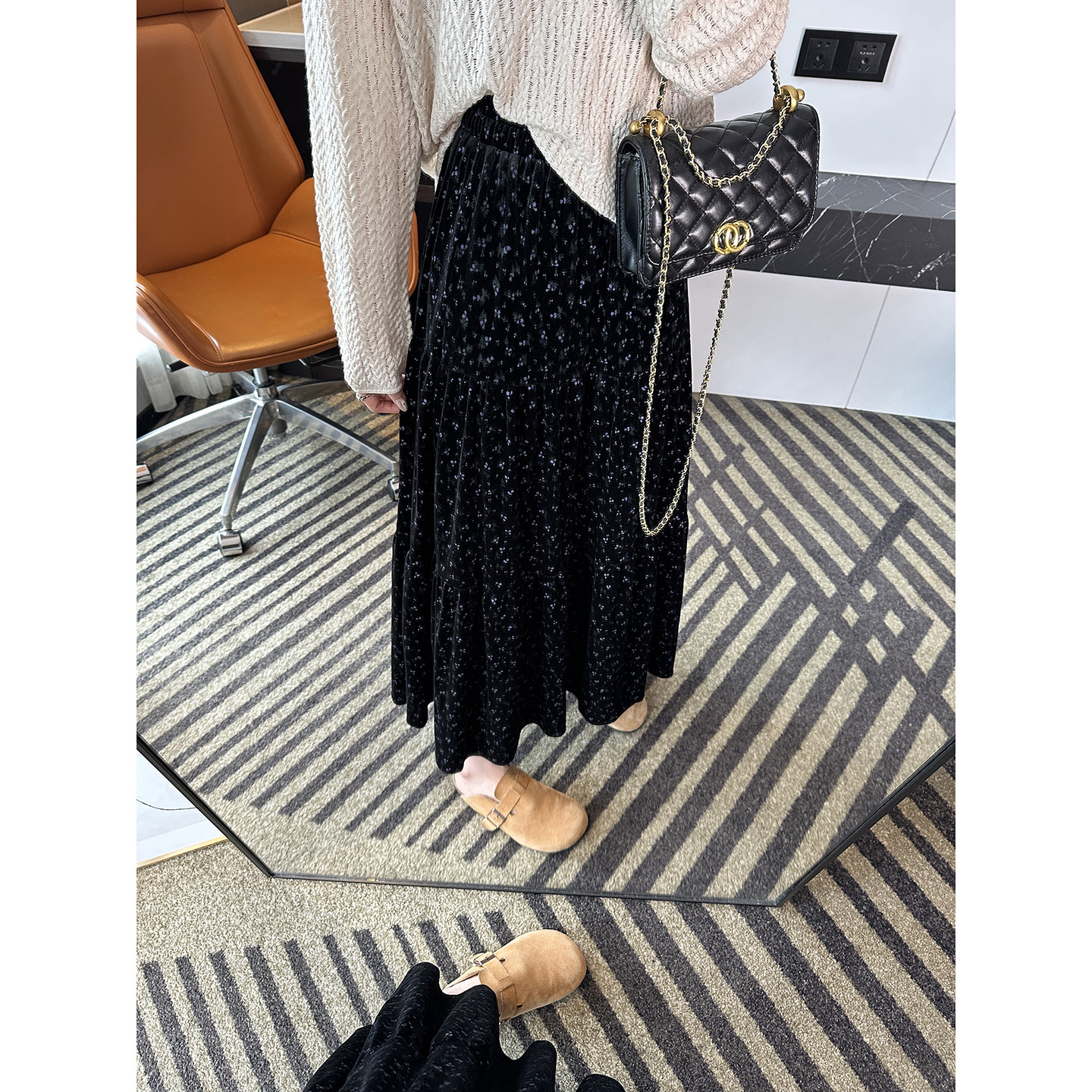 📚 回头率爆表!丝绒百褶小碎花半身裙女2025秋冬新款气质高腰中长裙