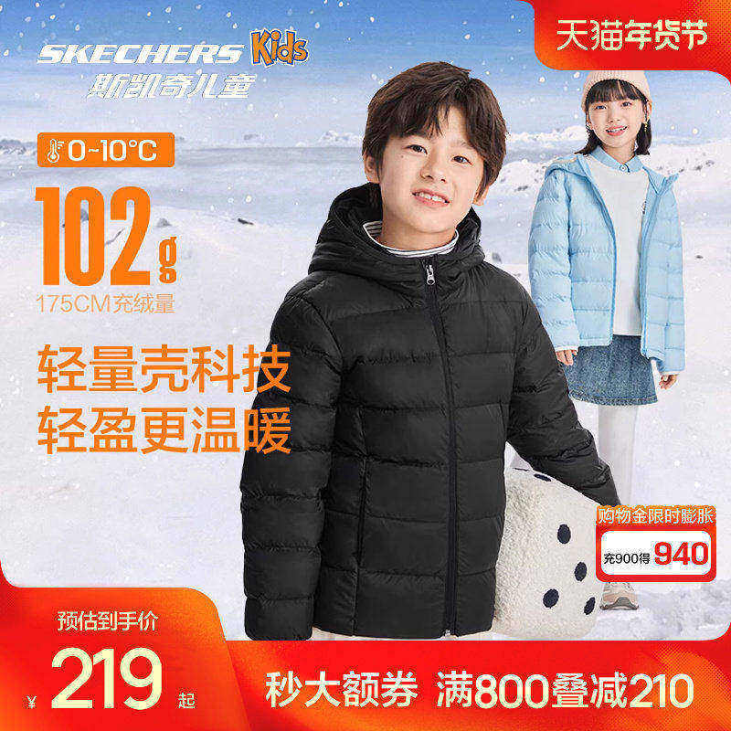 📚 斯凯奇outlets男女童轻薄短款羽绒服冬季童装儿童三防羽绒外套