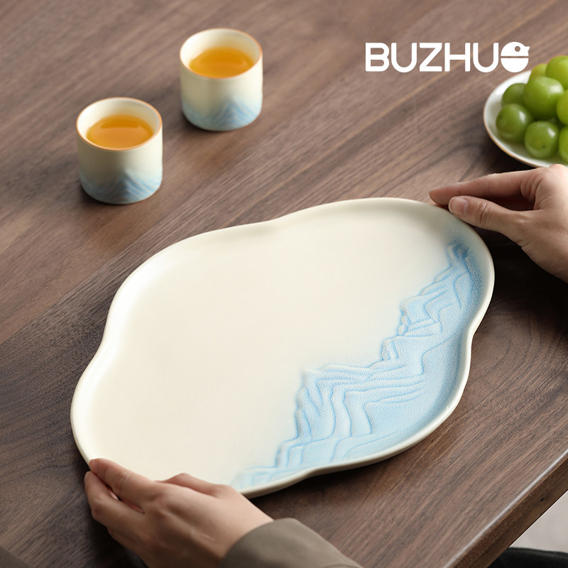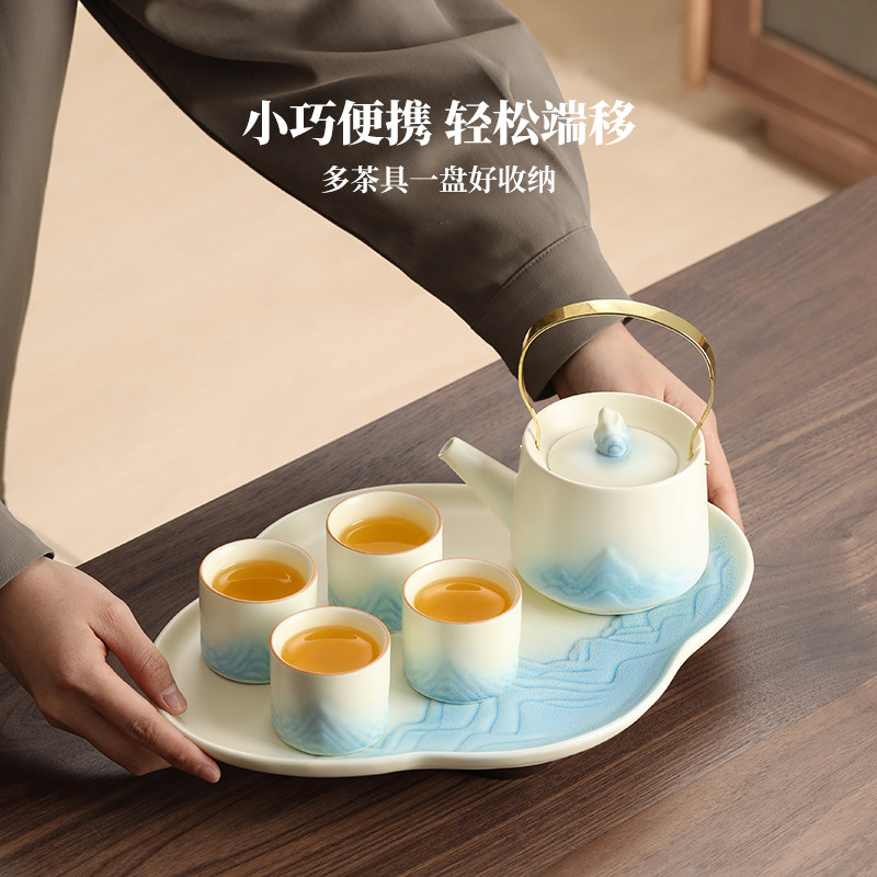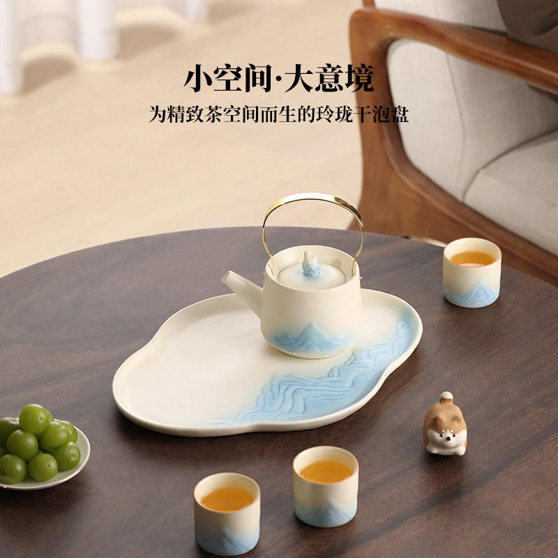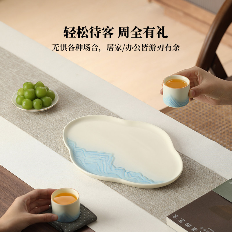 📚 陶瓷茶托盘高档轻奢茶盘小型年轻人家用水杯果盘高颜值国风茶具
