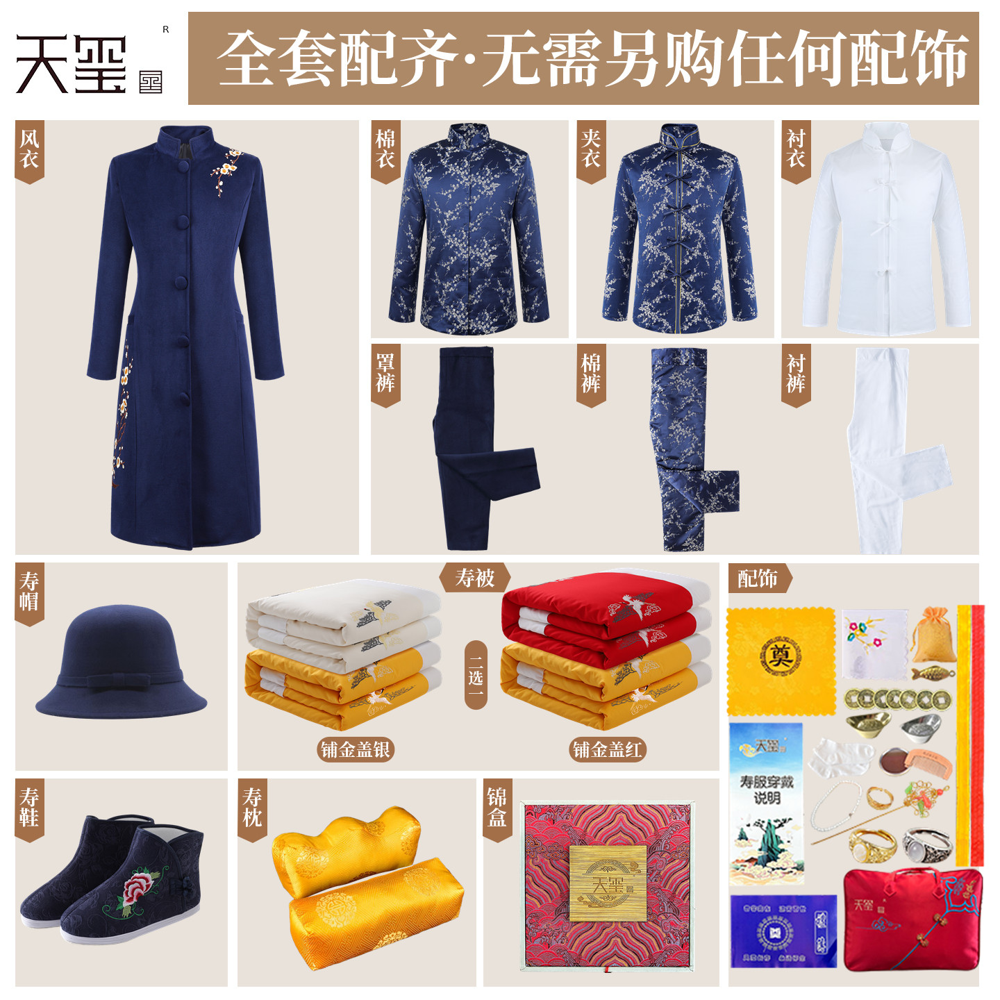 📚 寿衣女现代全套 纯棉年轻款寿服 老人风衣长款寿品殡葬用品 天玺