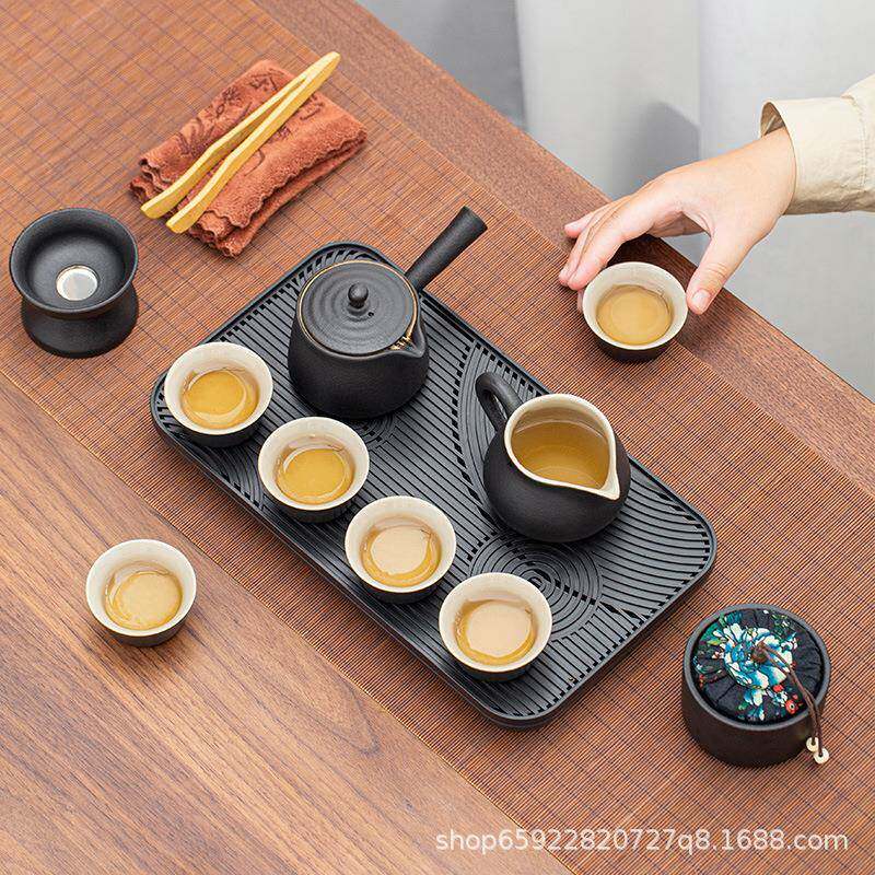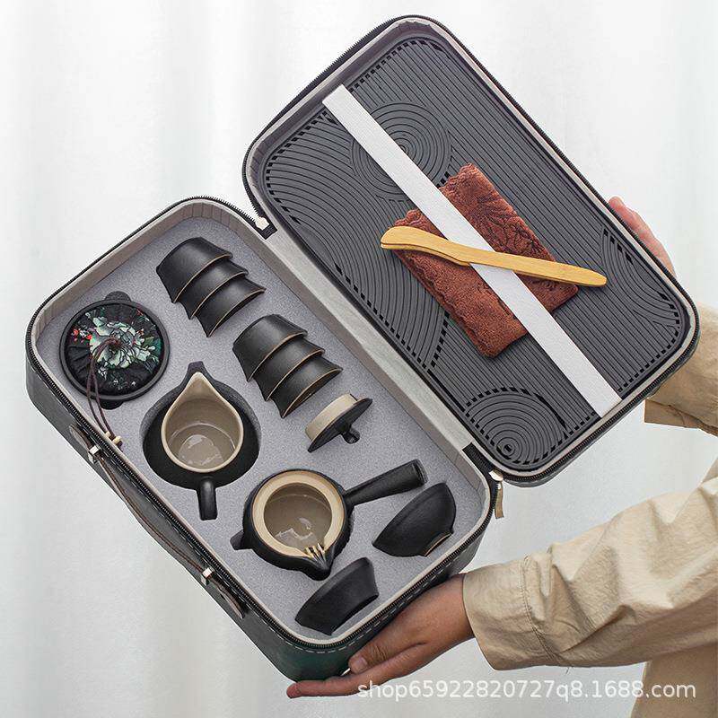 📚 整套茶具配套高级皮盒茶盘星级酒店宾馆户外露营民宿客房茶具