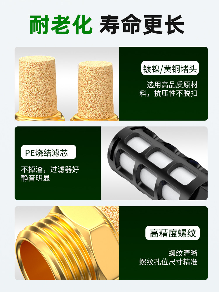 📚 消声器气动铜消音器电磁阀静音塑料平头长头堵头BSL01/02/03/04分