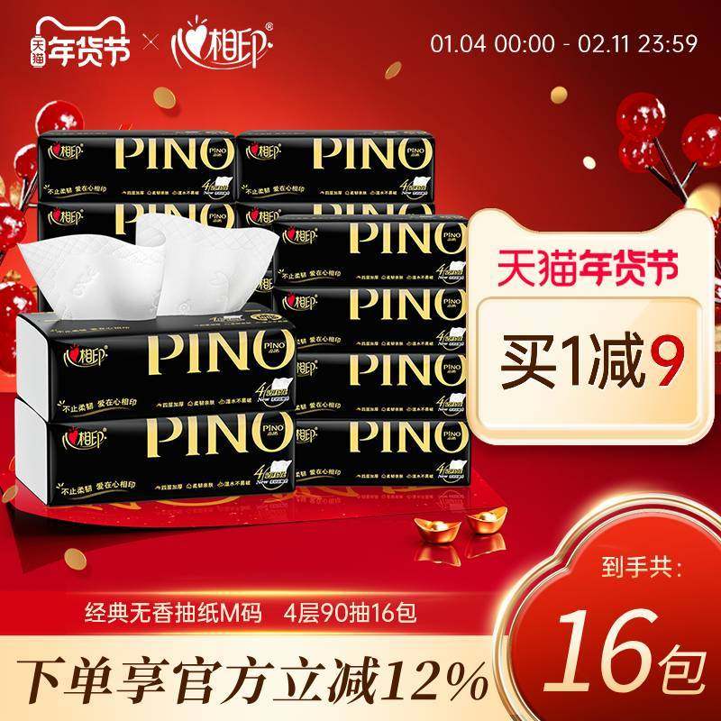 📚 心相印品诺系列面巾纸抽纸家用整箱餐巾纸加厚加大M码4层90抽16包