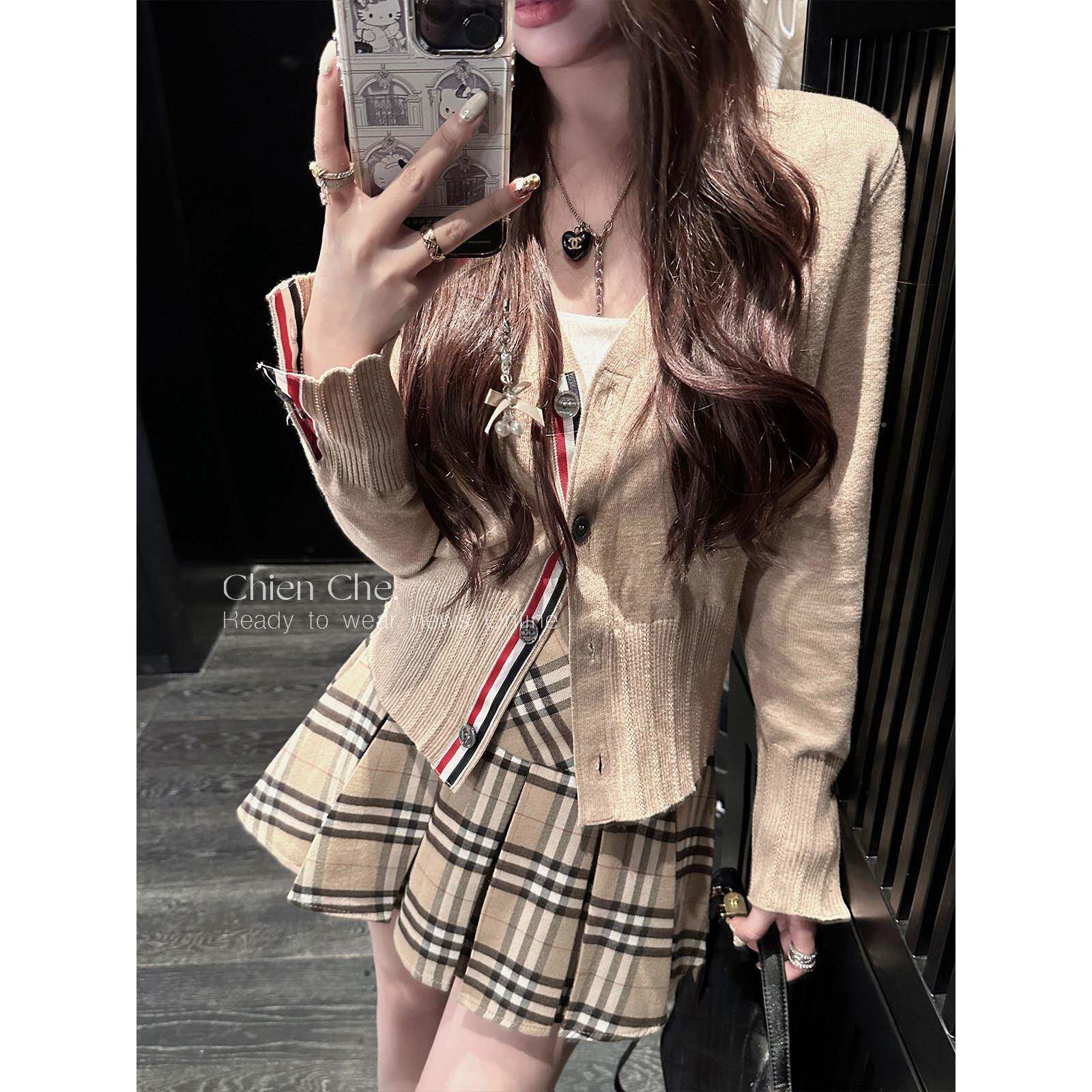 📚 车迟恩Cien 千金衣毛针感织开衫秋撞色C240382条纹收腰h小香风上