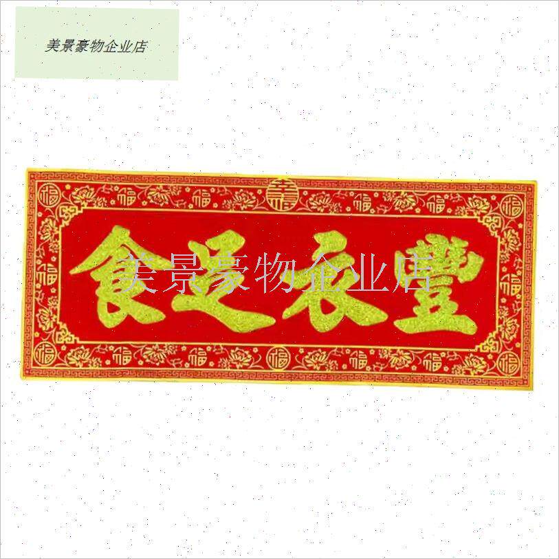 📚 丰衣足食红底烫金字绒布条幅珲春贴纸乔J迁入宅门对门头楣春联横.