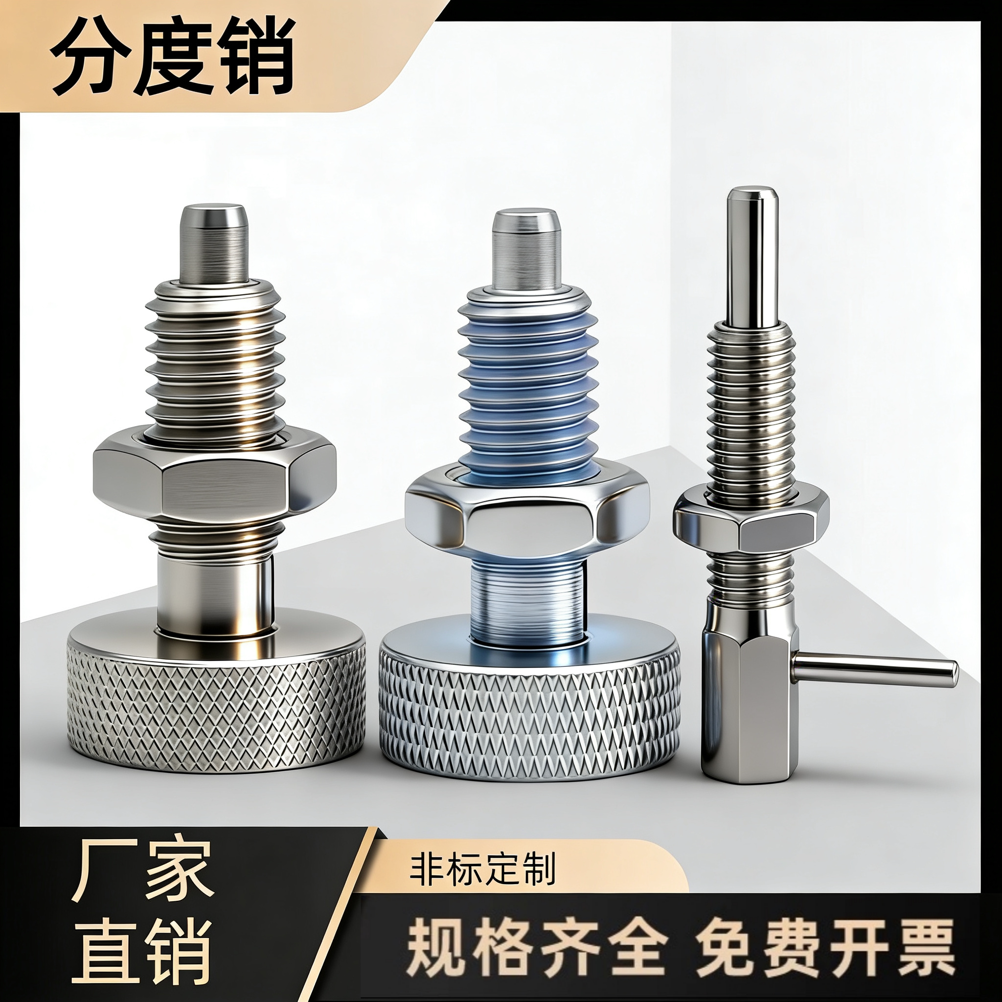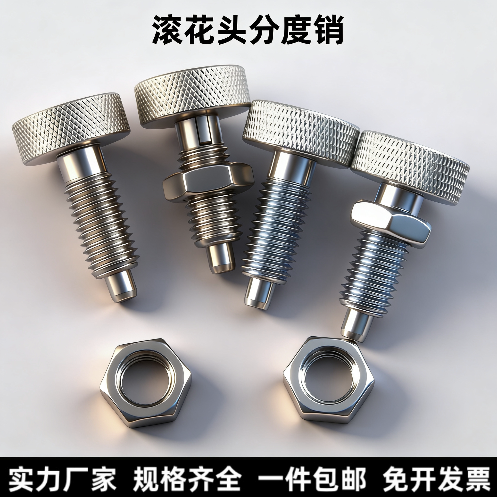 📚 旋钮柱塞不锈钢滚花头分度销弹簧定位销粗牙止动安全插销M6-M16