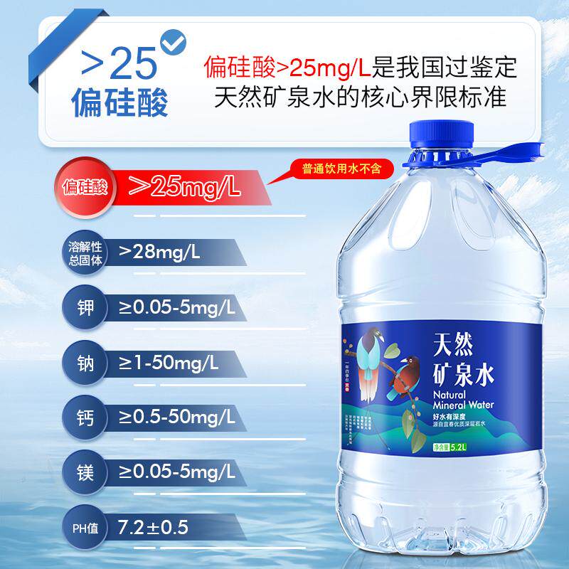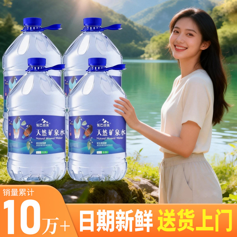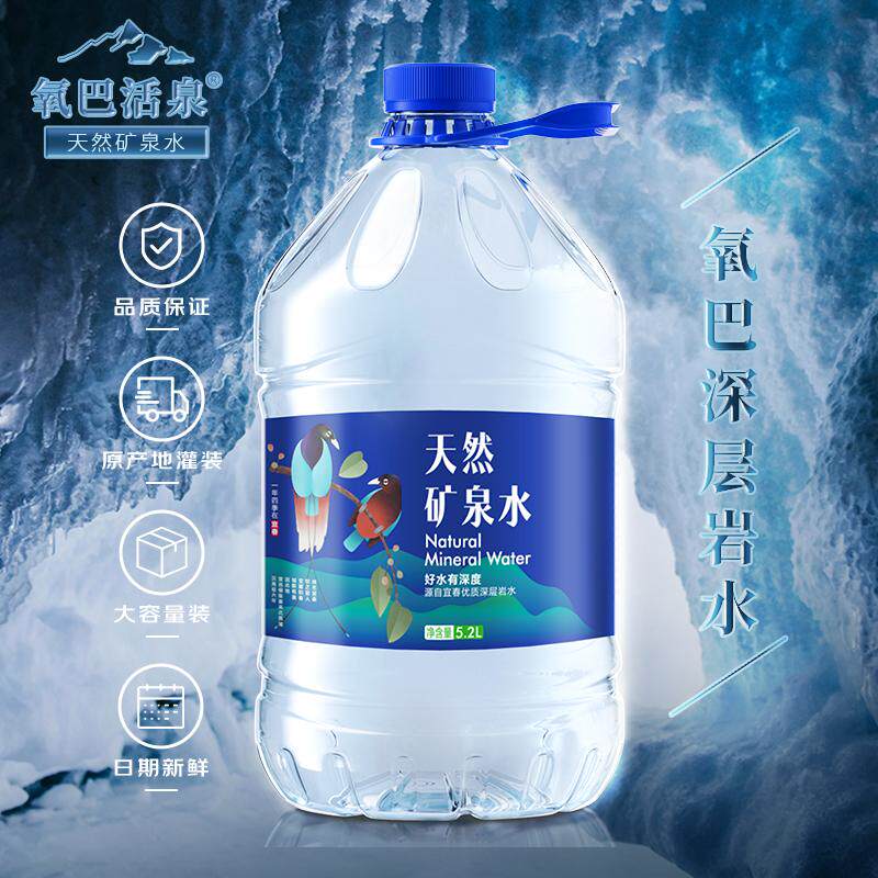 📚 氧巴活泉天然矿泉水5.2L*4桶偏硅酸GB8537弱碱性饮用水泡茶整箱