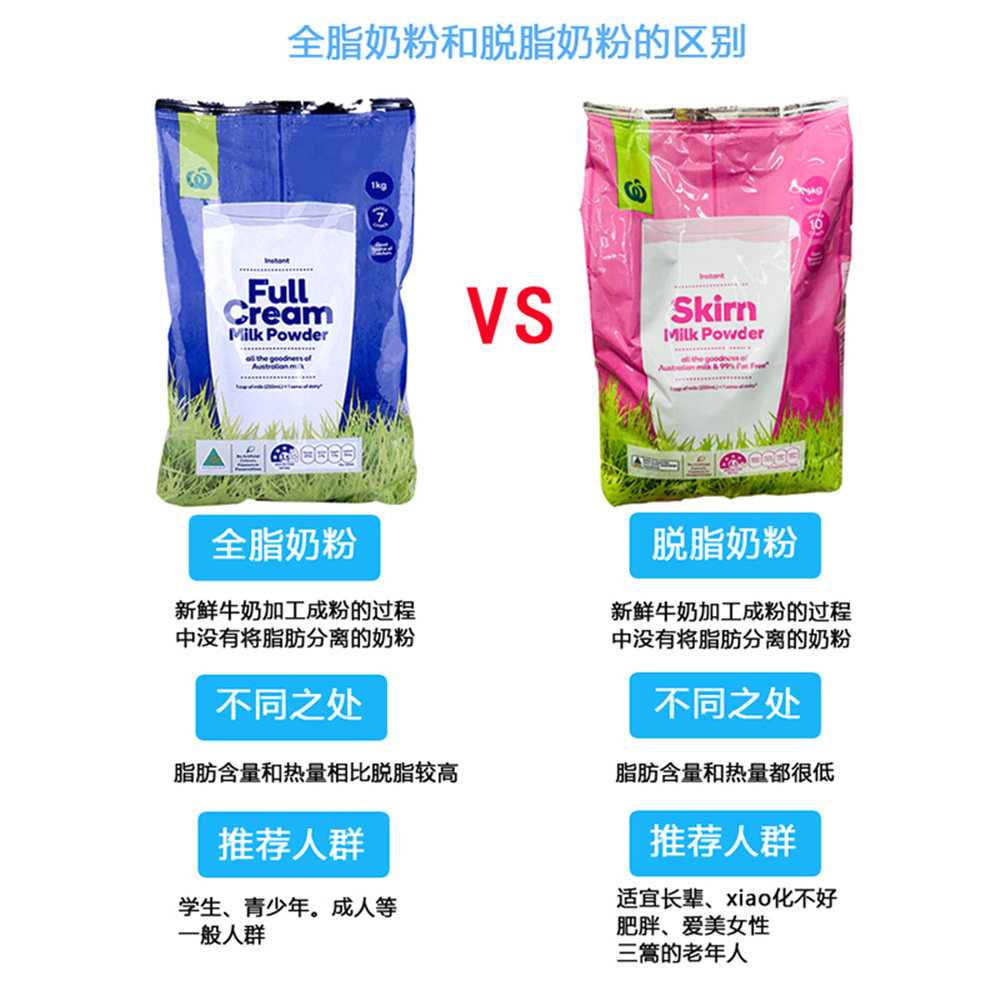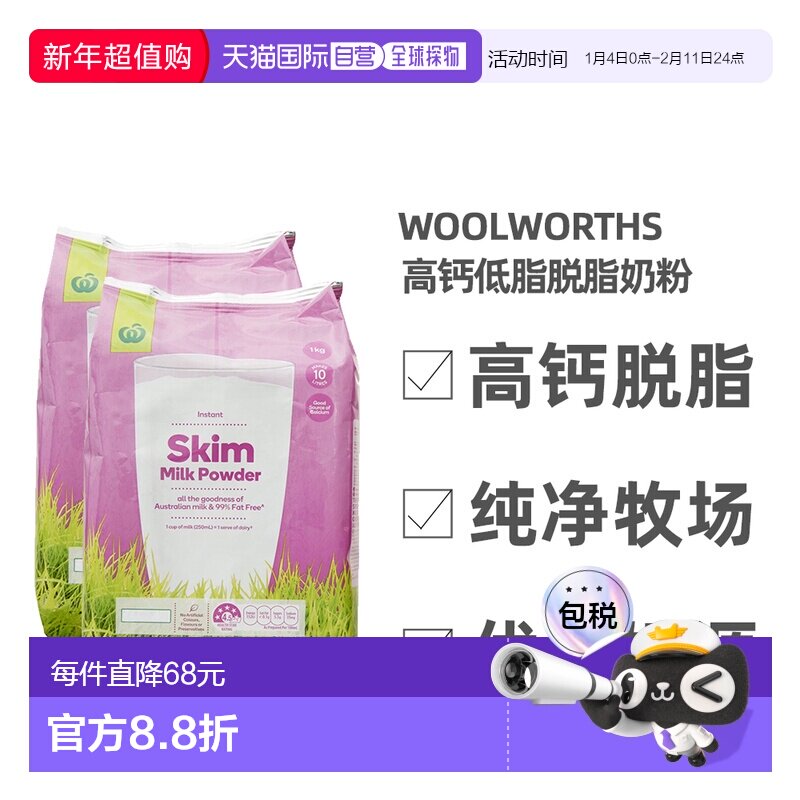 📚 澳大利亚直邮Woolworths高钙低脂脱脂奶粉1KG两袋装成人中老年