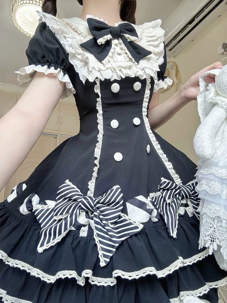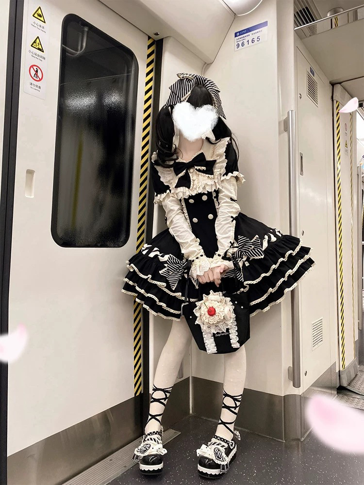 📚 实体店现货·心动玩偶条纹千层收腰纯色千金风lolita裙