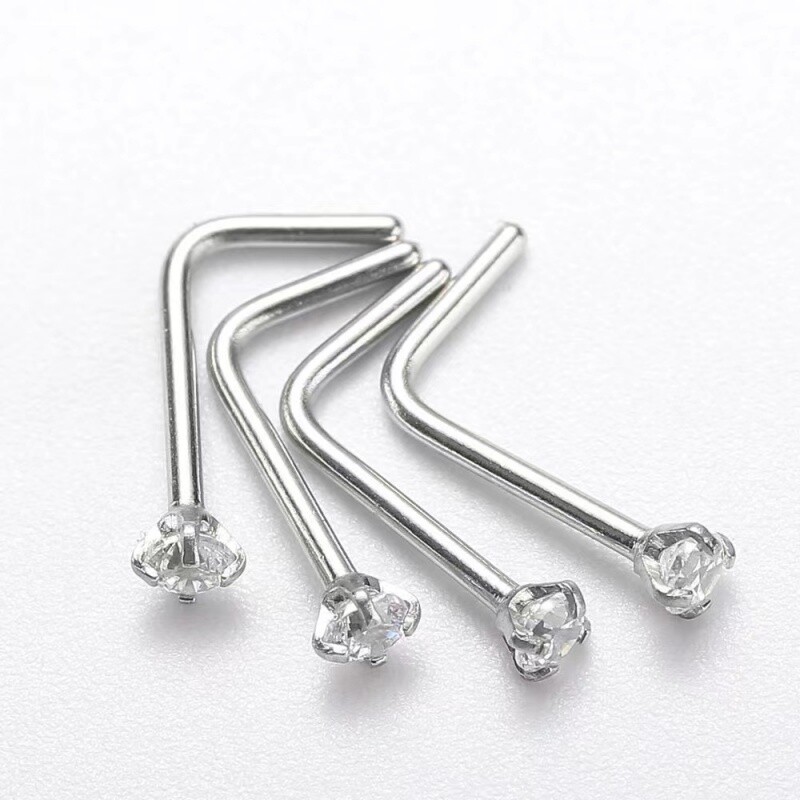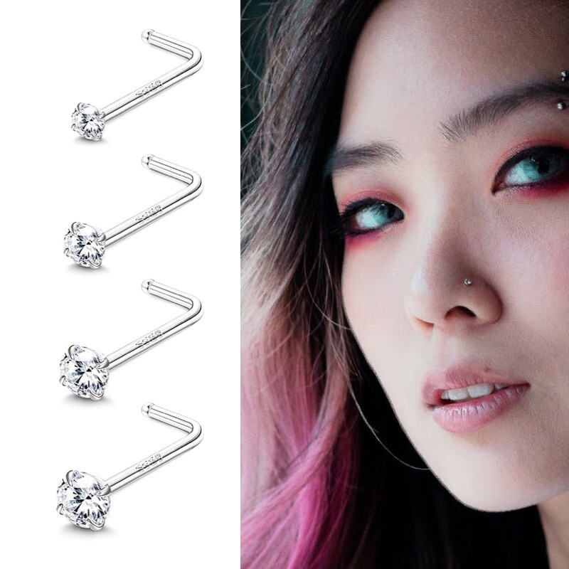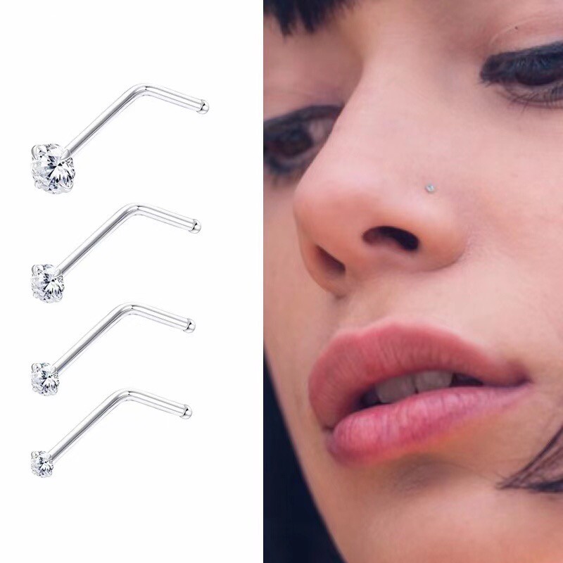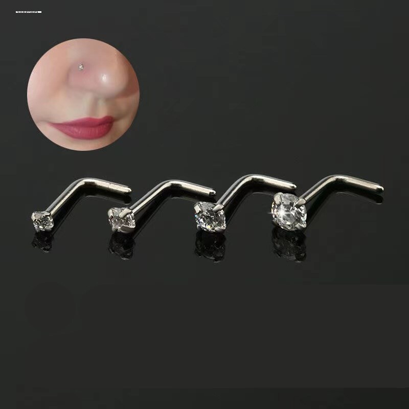 📚 精美锆石鼻钉L杆7字不易掉钛钢仿钻石性感饰品女生