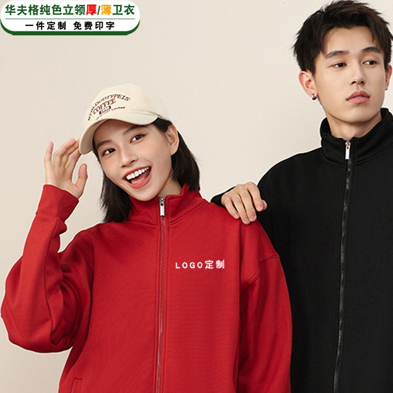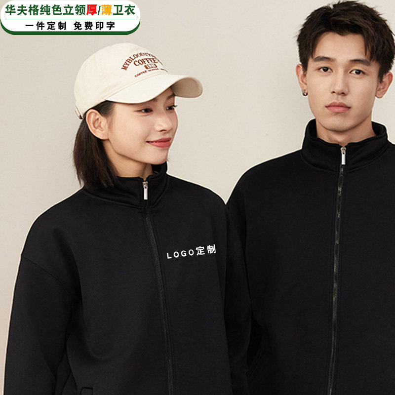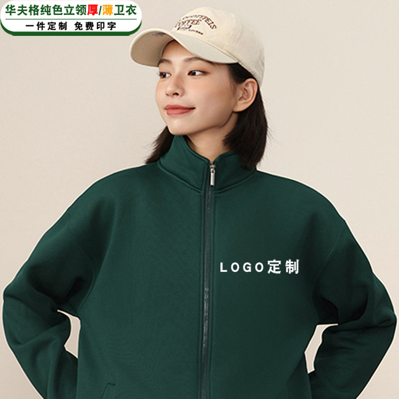 📚 秋冬加绒华夫格卫衣女纯色拉链开衫餐饮服务员工作服外套定制logo