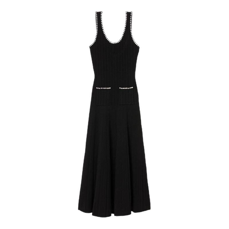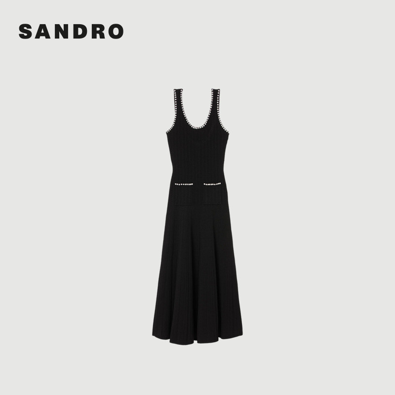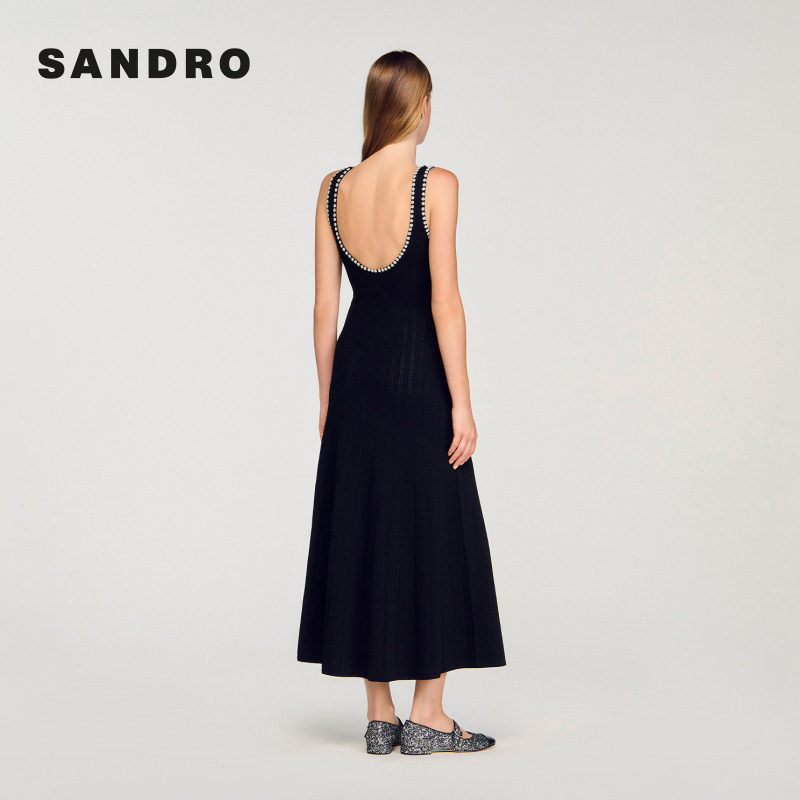 📚 季末6折SANDRO2025秋冬新款女装法式黑色花型串珠露背针织连衣裙