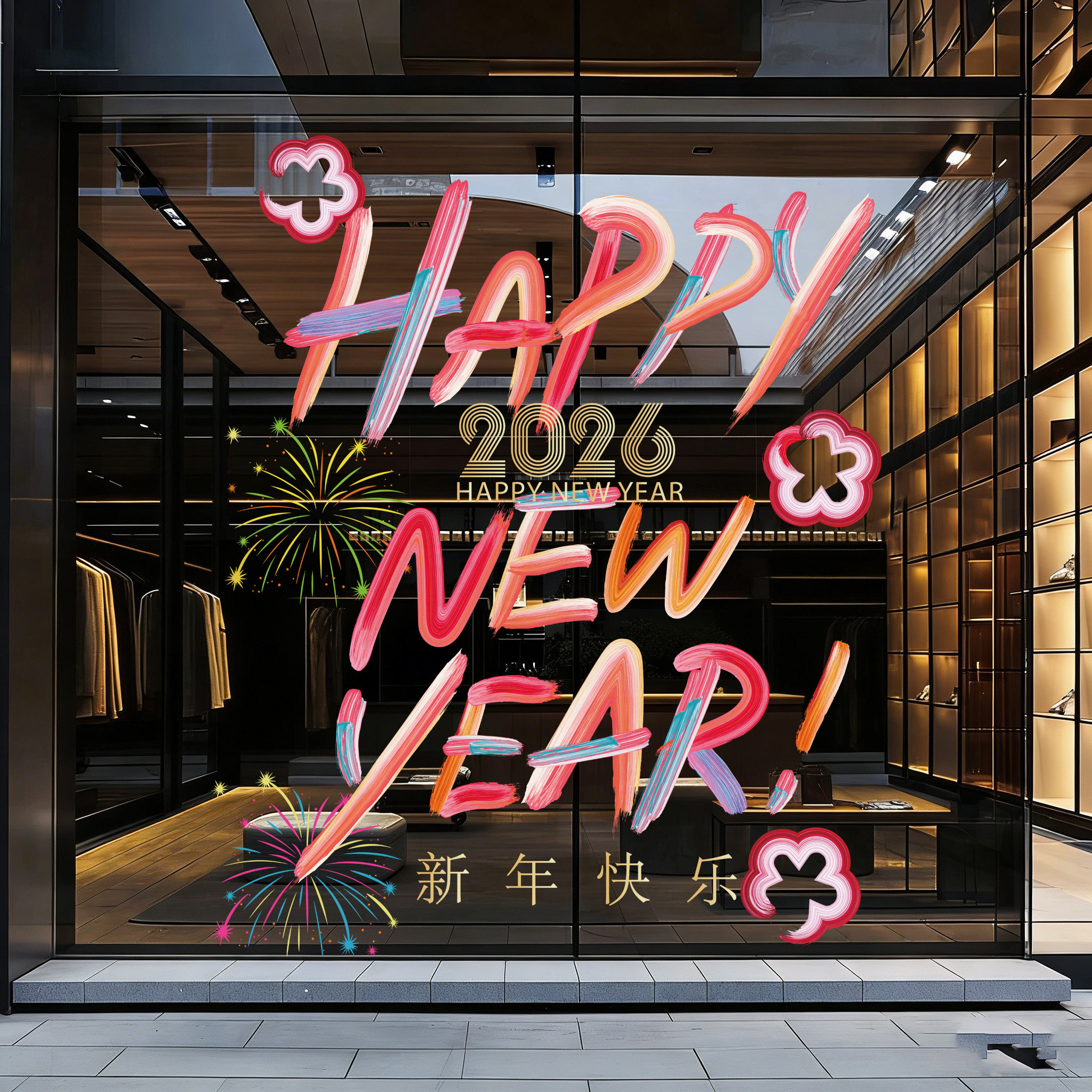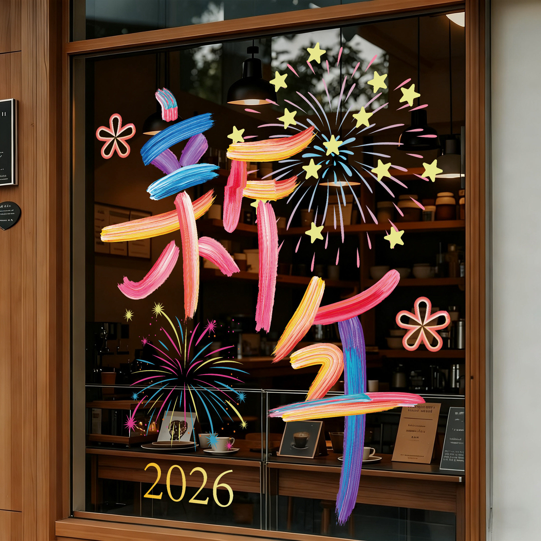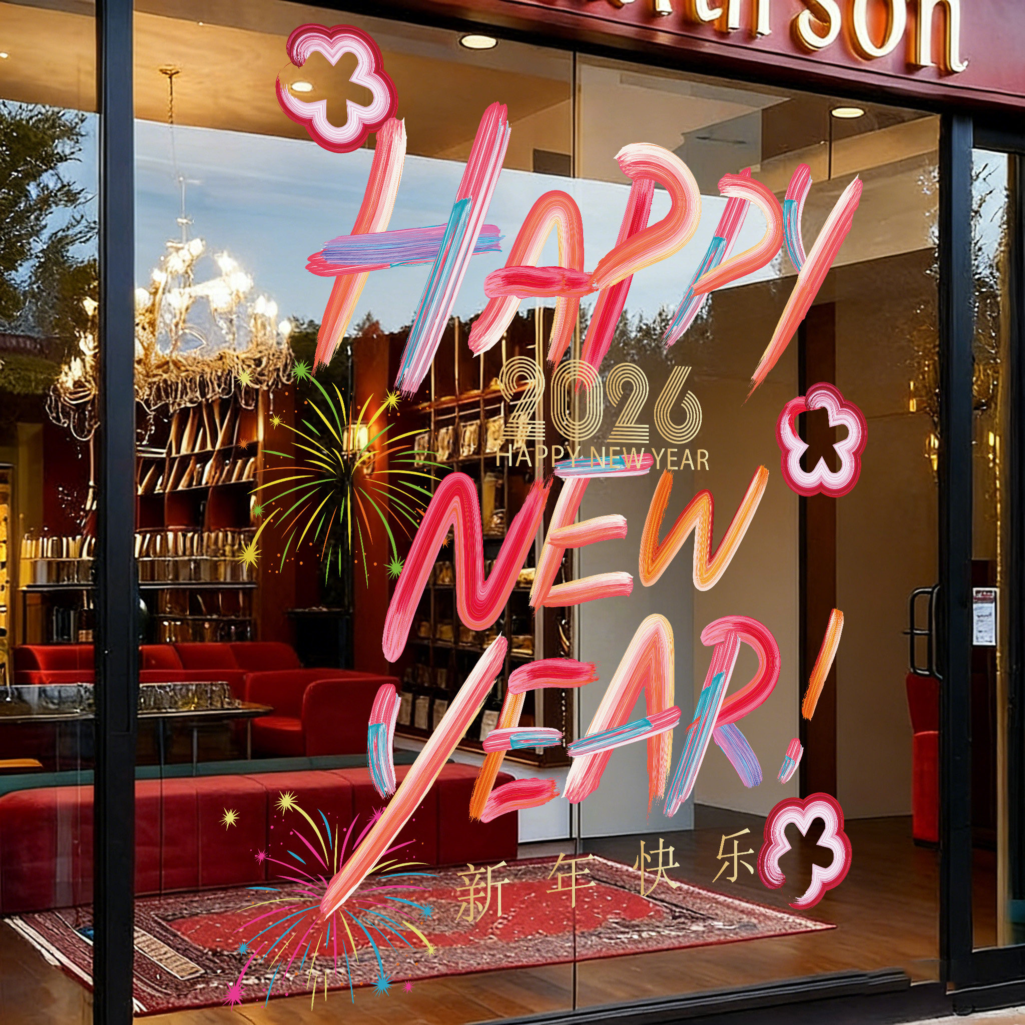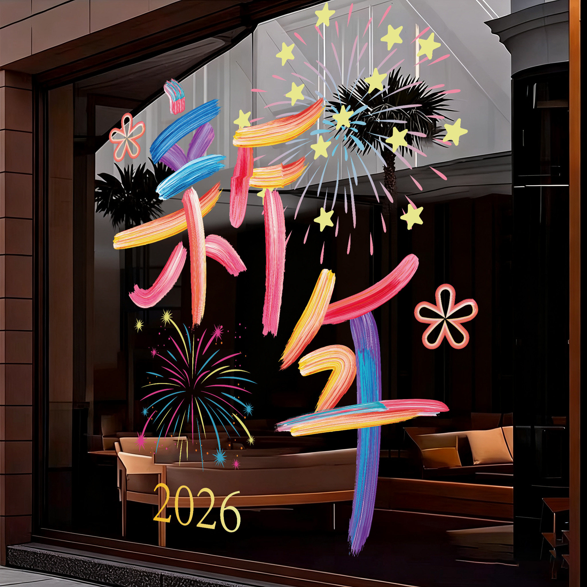 📚 新年装饰窗花彩绘款文字春节玻璃橱窗银行公司烧烤奶茶店门贴马年