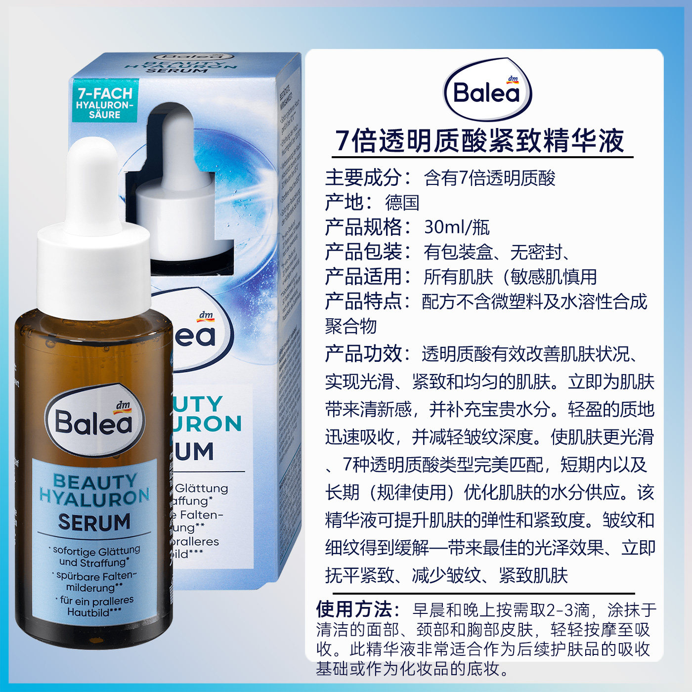 📚 dm德国balea芭乐雅7倍玻尿酸精华液面部保湿修护精华抗老提拉紧致