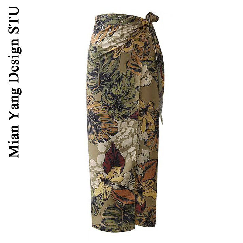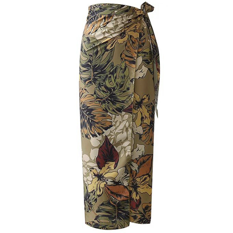 📚 法式异域风情印花裹身包臀女裙~度假风整片式包裹侧边系带半身裙
