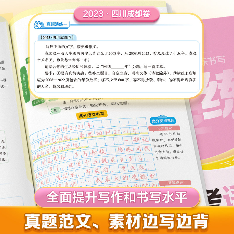 📚 华夏万卷 学练测.初中语文满分作文楷书字帖初中生专用练字帖中考历年真题高分写作七八九年级作文素材初一二三写作技巧优秀作文