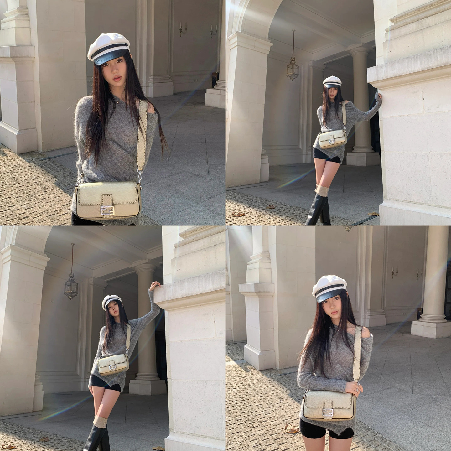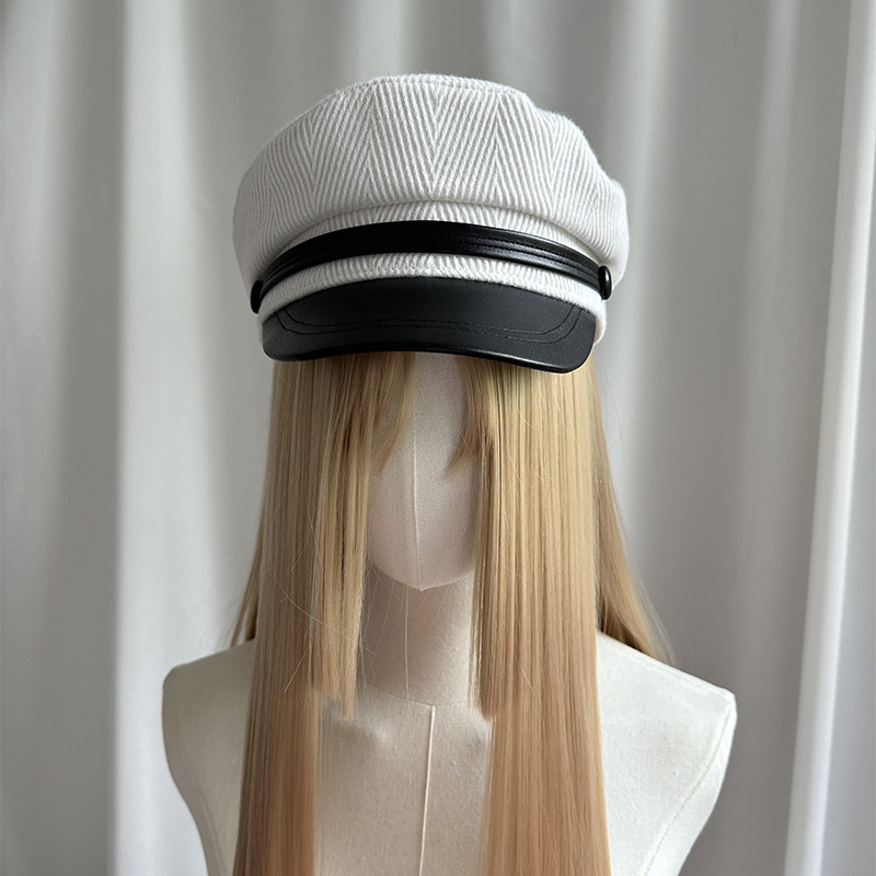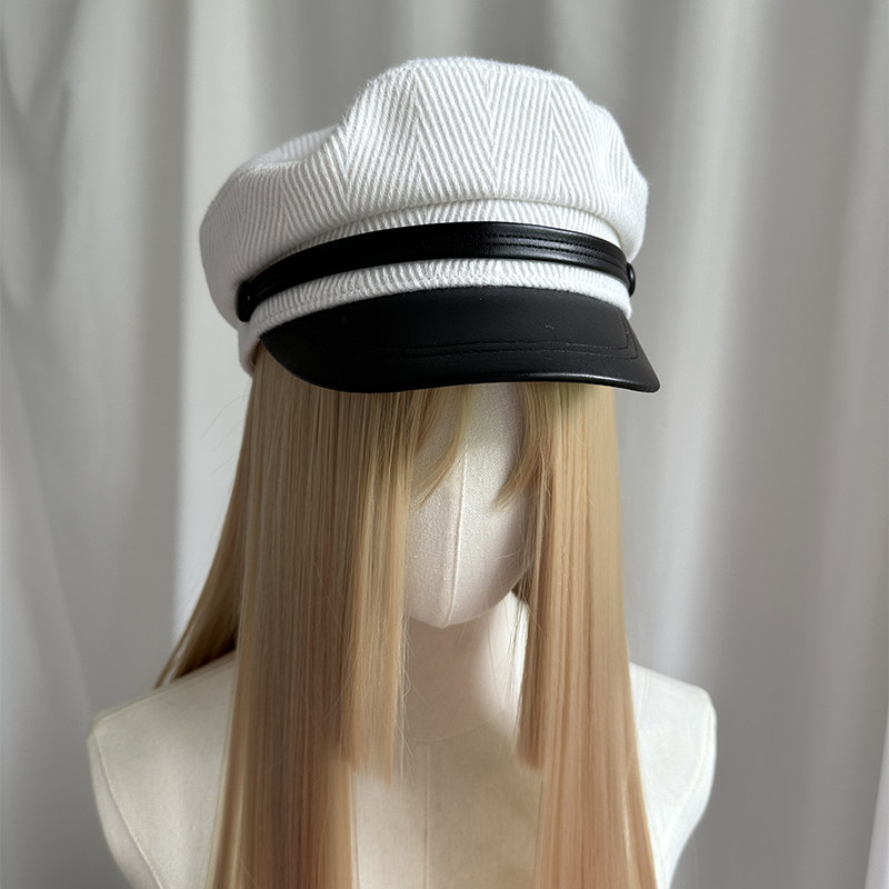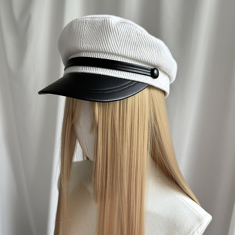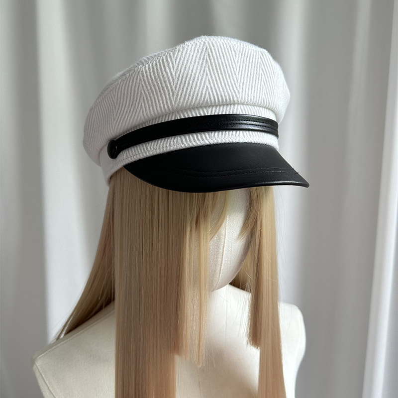 📚 秋冬白拼色秋冬小帽檐鸭舌帽女呢子水手帽高级感穿搭立体有型平顶
